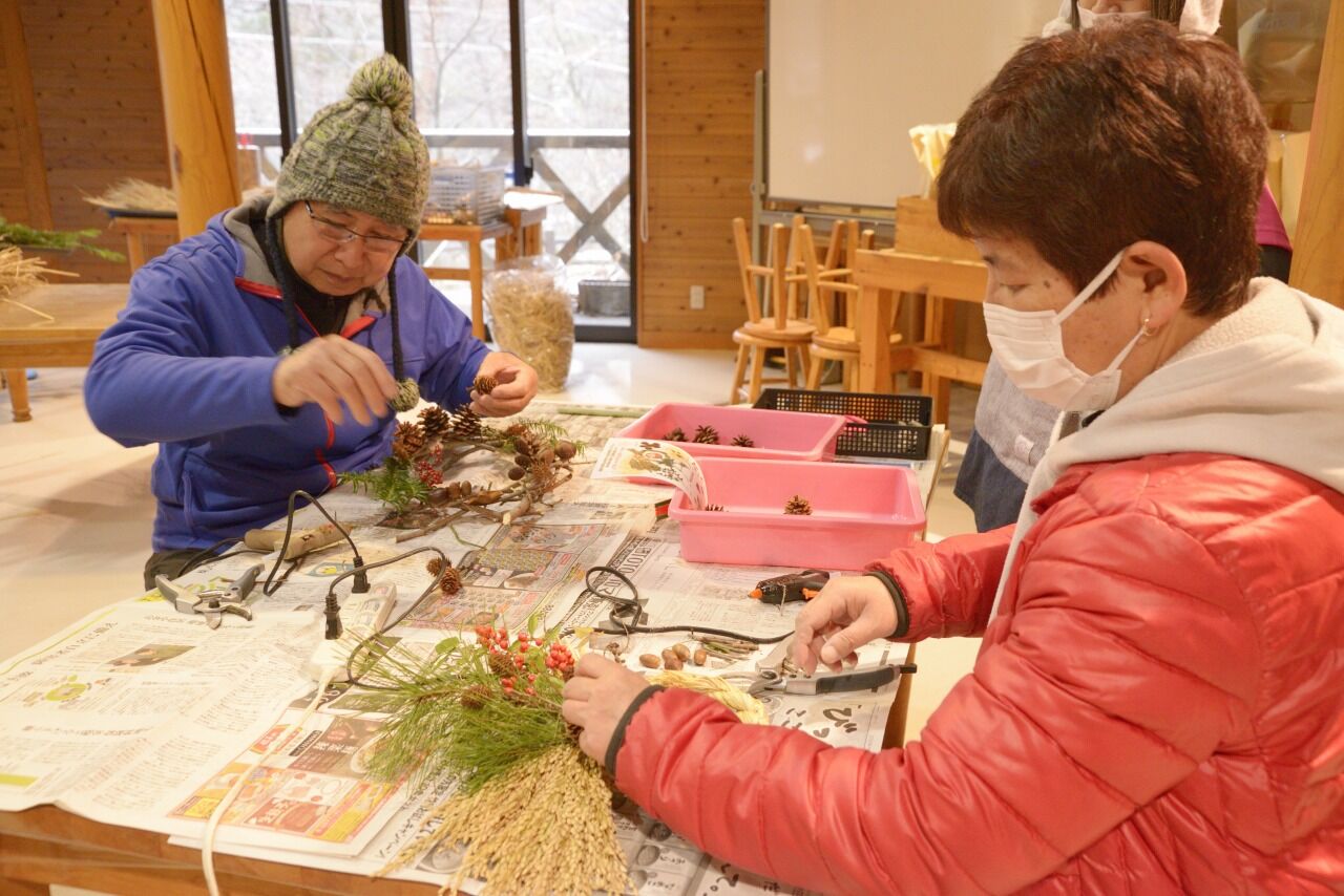 塩原の田んぼで育った稲穂をより合わせてベースを作り、塩原の森の木の実を飾り付けて正月飾りを完成させます。願いを込めた手作りのお飾りで、新しい年を迎えてみませんか?