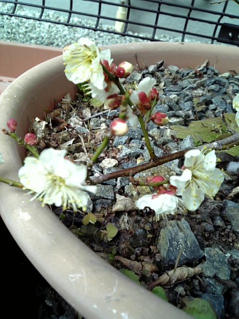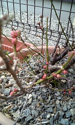 うちでは、先日お話しました「梅花」がほころび始めています。