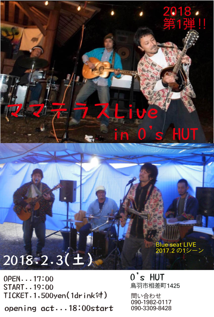 昨年末にできた我らがライブハウス「O’s HUT」、第1弾「都会のラクダ」に続いて、第2弾として関西の元気な若者たち「ママテラス」のライブをやる。去年は大雨の降る寒い中、ブルーシート・ステージでしんどい目をさせてしまったが、今年はもう大丈夫!ちゃんとしたステージで思い切り歌ってもらいましょう。還暦は何年か前にむかえた俺たち昭和30年生まれ。今年は寺年寄の役目が回ってきた。地元に根を張り生きていくためには、これも仕方ないことだと割り切っているが、年寄とは・・・参るな!