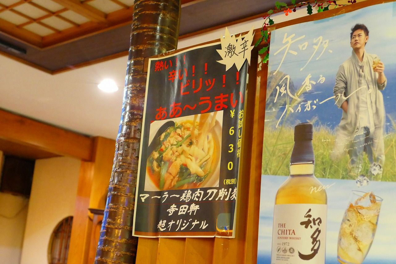 〆は壁に貼ってあったメニュー、マーラー鶏肉刀削麺をいただきました。