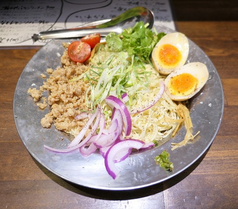 ご一緒した常連さんのおススメにしたがって汁なしレモンソバをいただくことにしました。