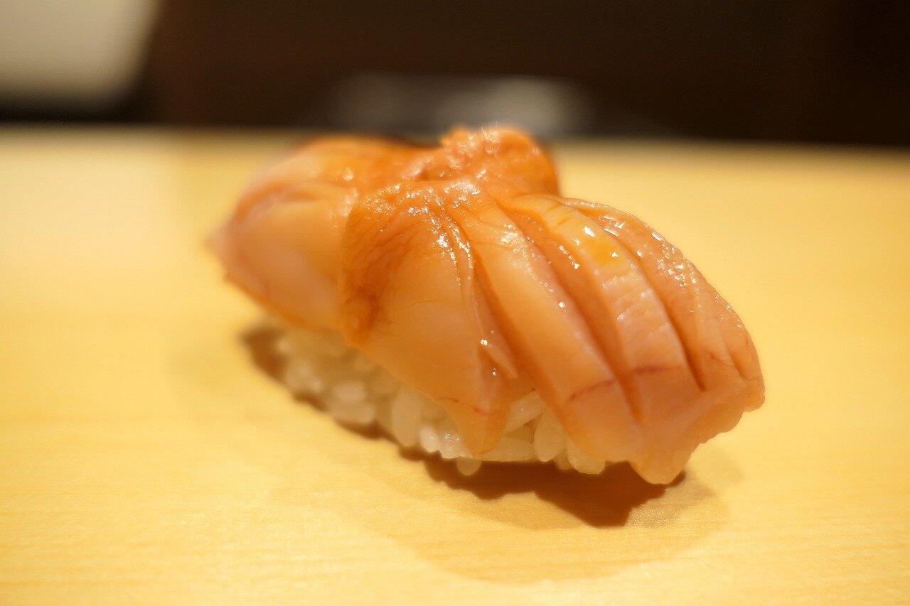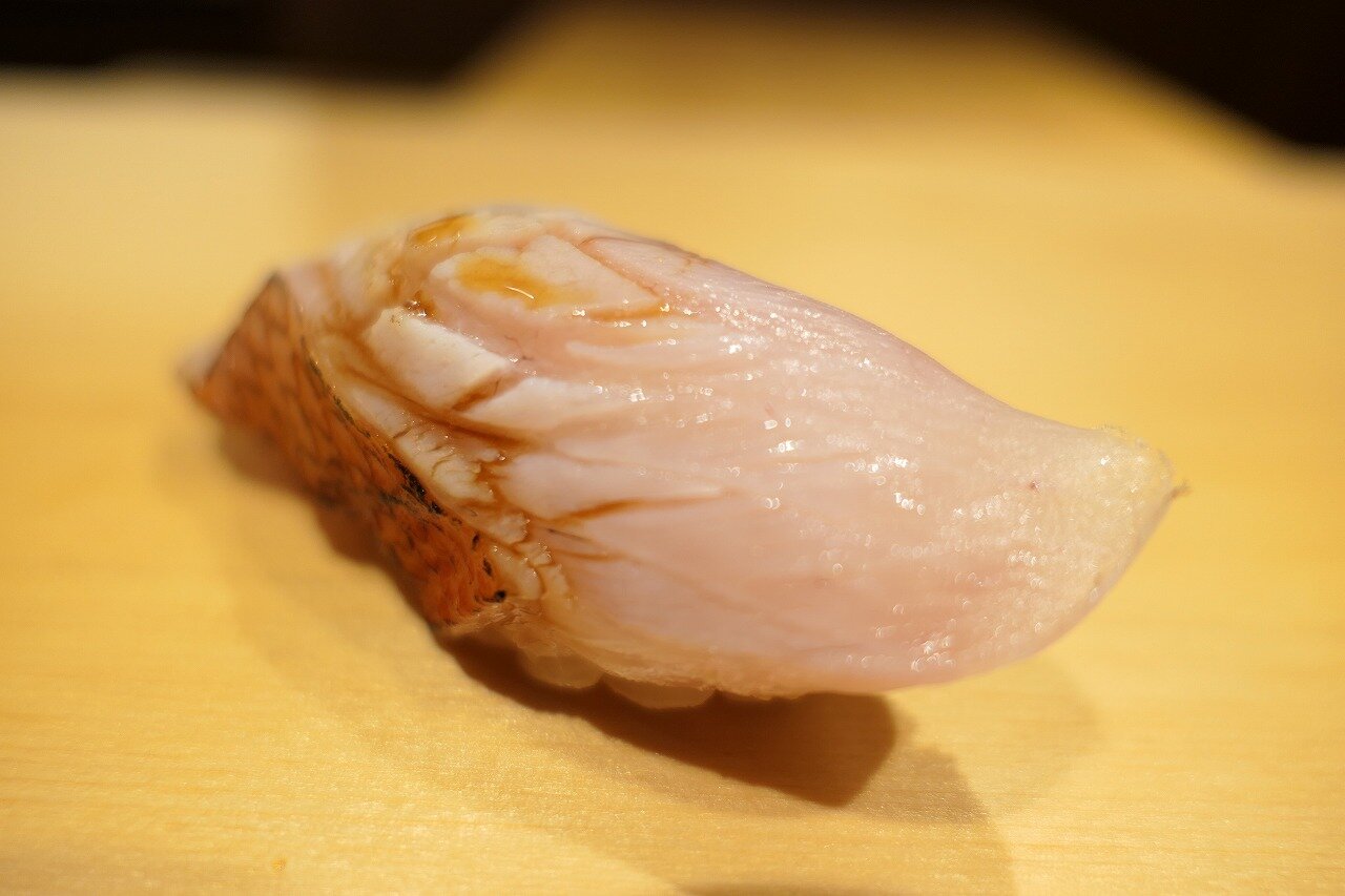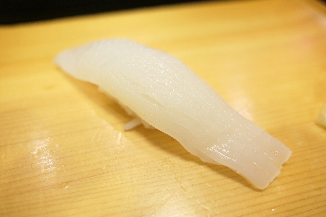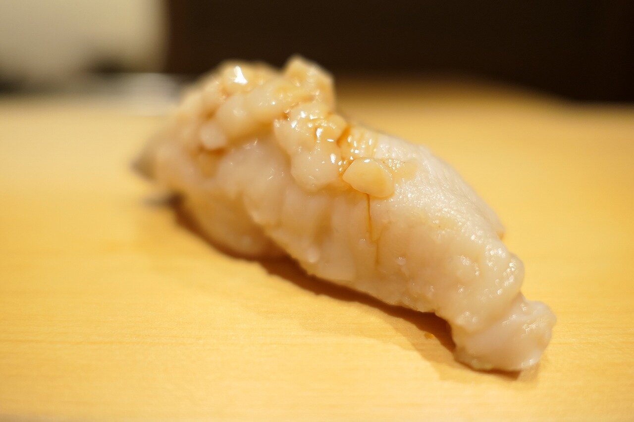 更にそのエンガワ。より筋肉質なのでしっかり包丁が入ってます。