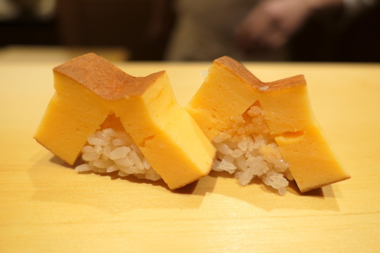 〆はおぼろが入った玉子焼き握りに