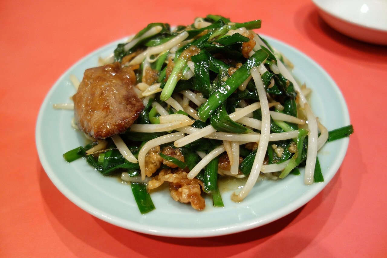 合わせた肴は韮菜肚です。レバーの主張が激しい一皿ですね(笑)