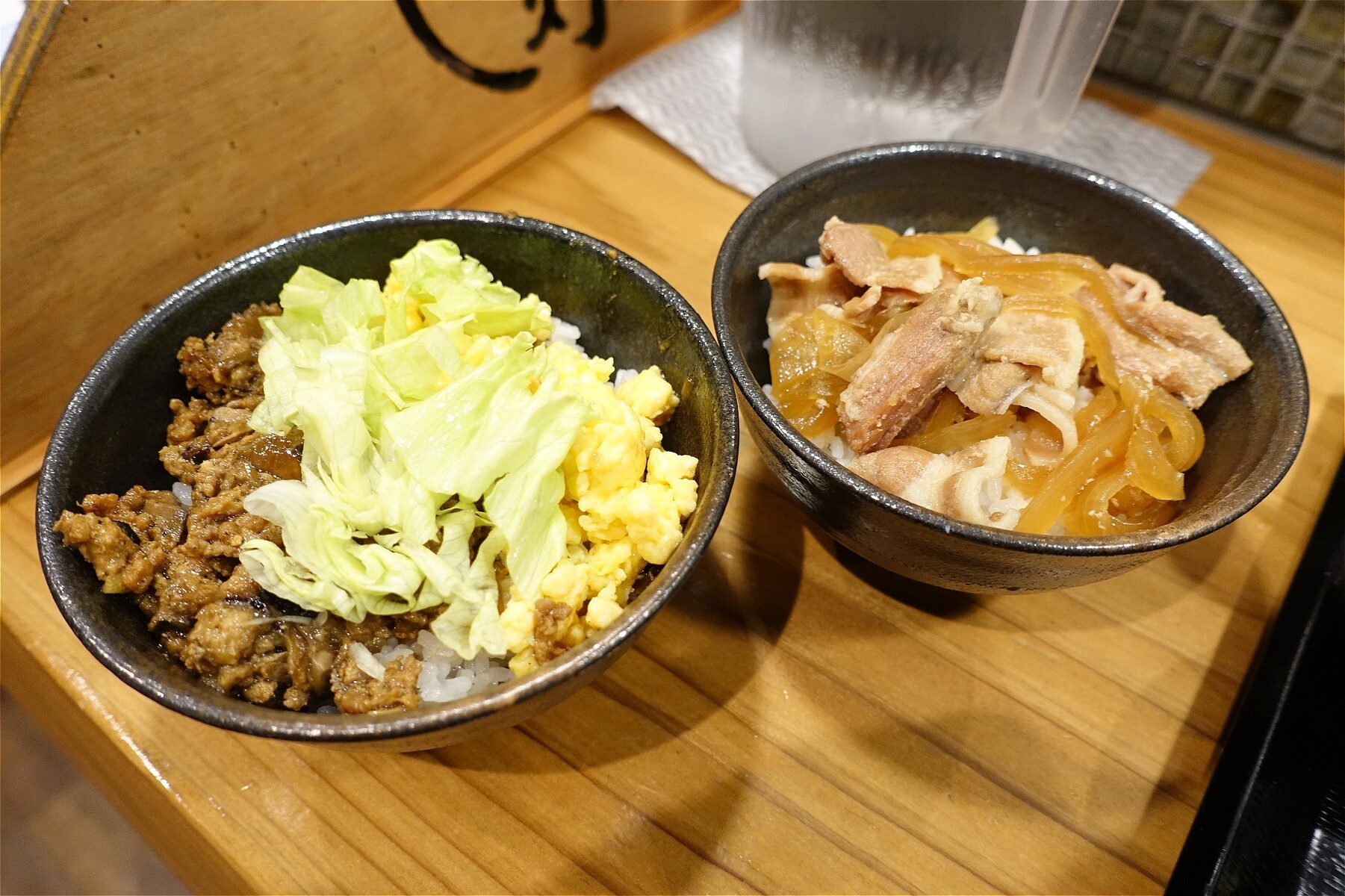 今回は豚角煮と青菜つけそばにミニ丼を2つお願いしました。
