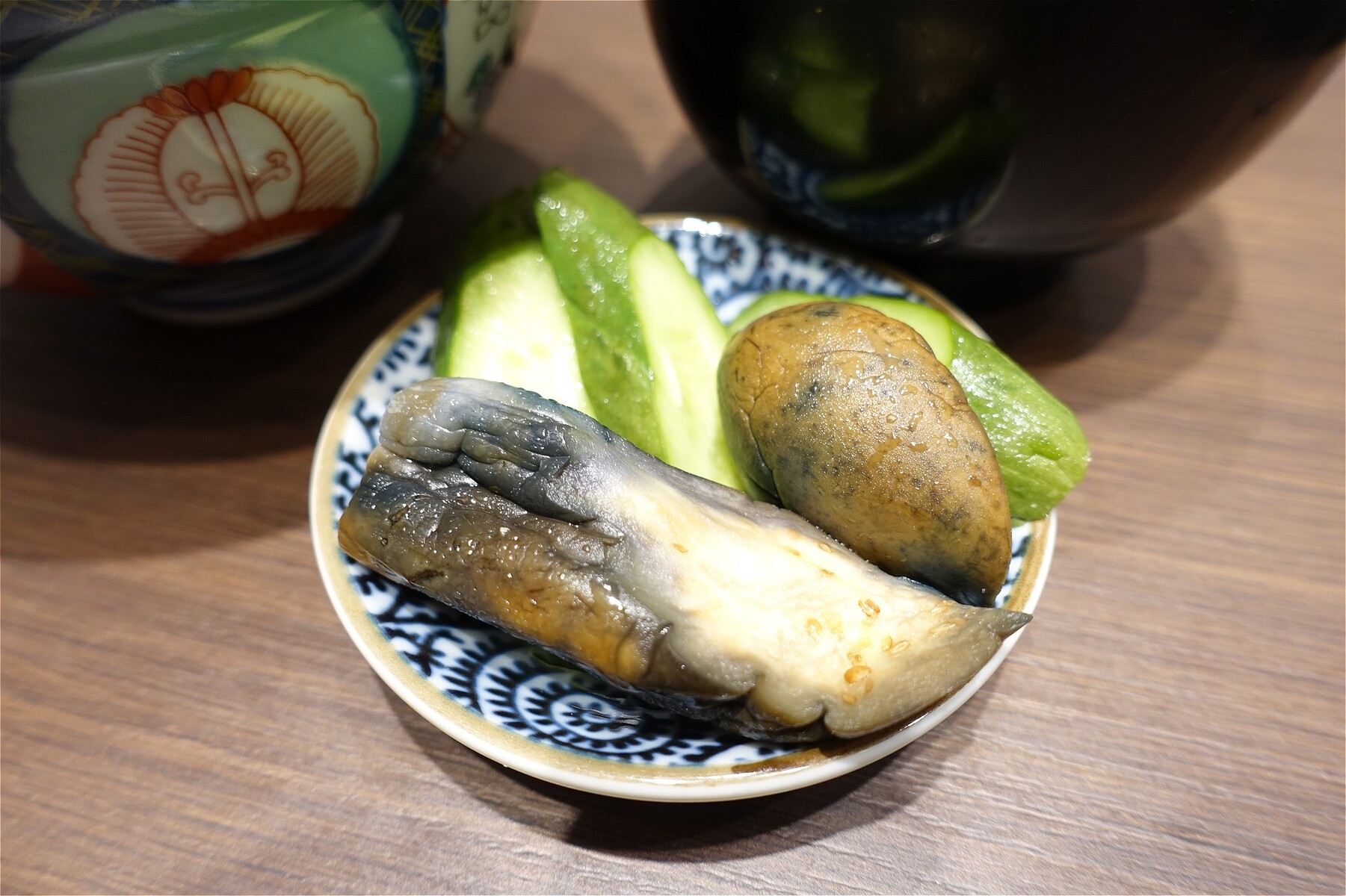 ワンポイントの胡瓜が爽やかさを演出。タレは担々麺っぽく胡麻風味です。