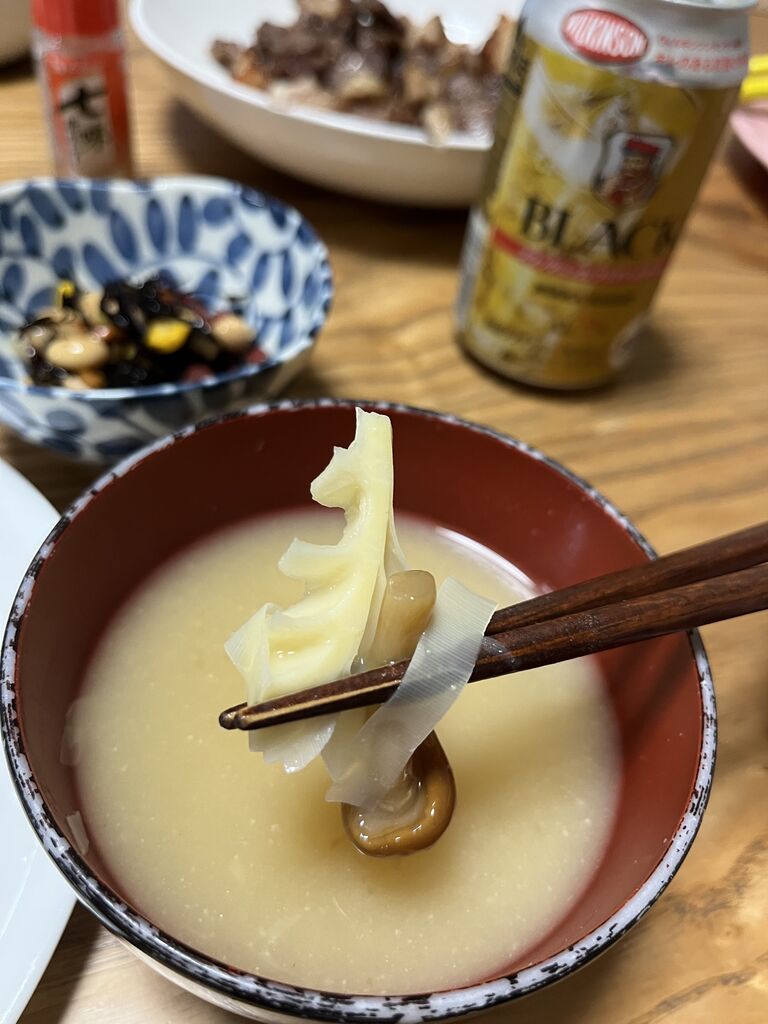 すぐに真竹となめたけのお味噌汁になりました。おいしい。