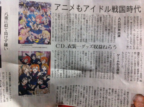 ◆朝日新聞に『アニメもアイドル戦国時代』・・・ってラブライブのことか!!