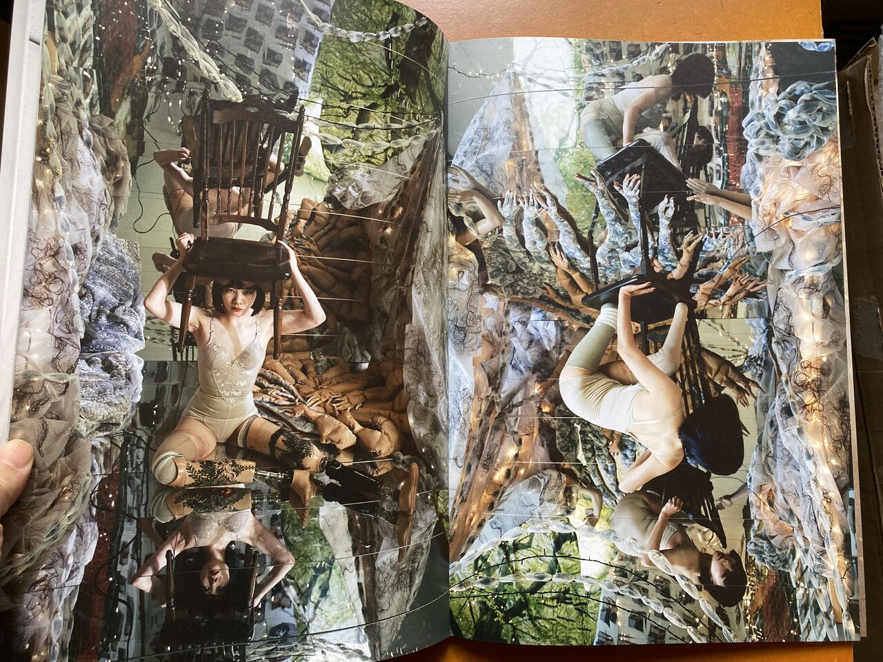 そして、この写真集自体もまた、「始まり」と「終わり」の感覚を拒む構造を持っている。2冊の書物が合わさったような造本はまさに"鏡"の形式であり、終わりなき映しの連なりを成す。どの頁が起点だったのか、いつの時代を見ているのか、やがて見失うカオスの中で、そこに現れるのは、ひとつの現実ではなく、幾つもの時間が交差する「パラレルワールド」なのかもしれない。