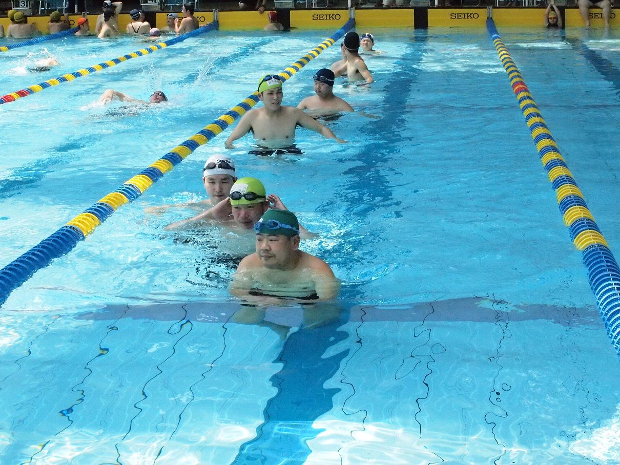 大きな、プールで開会式がありました、有森さんもいましたよ。 ウエルカムパーティーには細川さんと熊モンがいました。