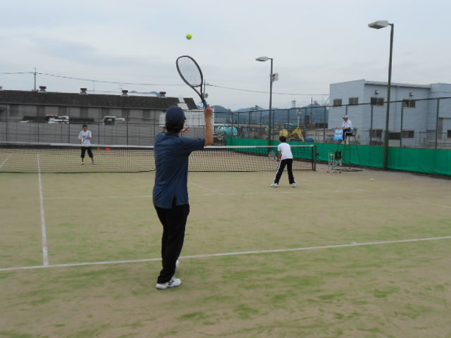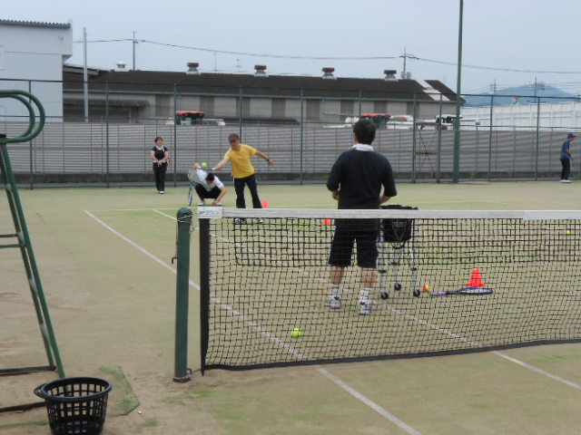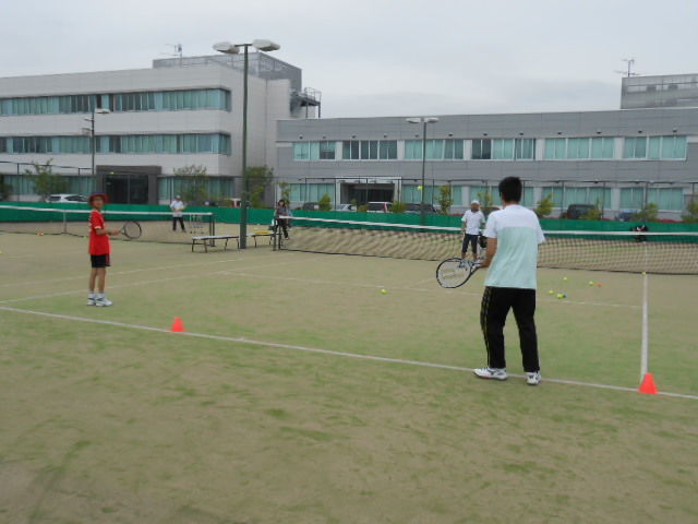 最後はハイタッチとコートに向かって「ありがとうございました」で締めくくり、朝から心配されてていた雨も降らず約2時間半の練習を楽しく終りました。園山様、コートの件ではいろいろご配慮いただきありがとうございました。また坂本様もお休みのところ、ボラさんをありがとうございました。