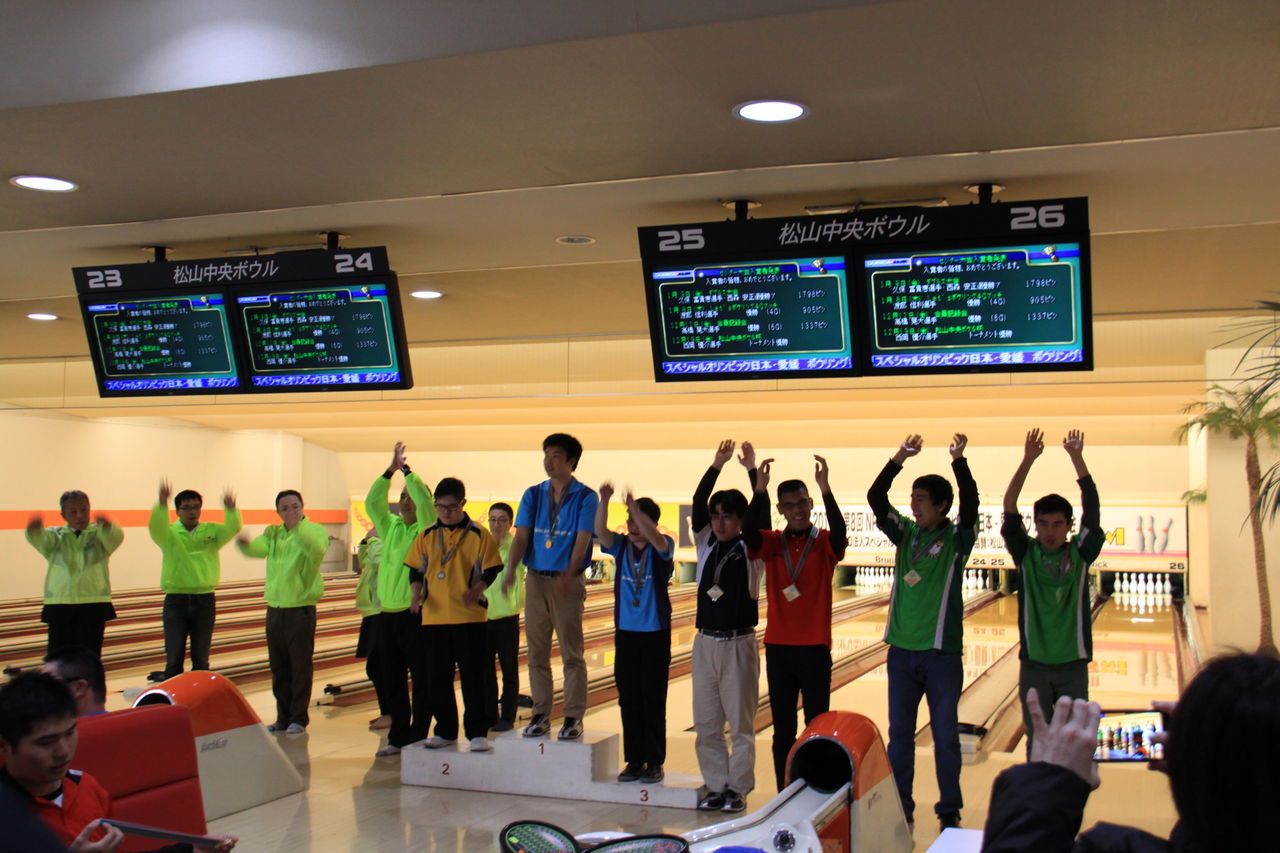 競技は、シングルス2ゲームで行われました。応援席が近かったので、ストライクやスペアーが出るとアスリートは、ボランティアさんだけでなく後ろの応援席ともハイタッチ。楽しくにぎやかに競技が進みました。