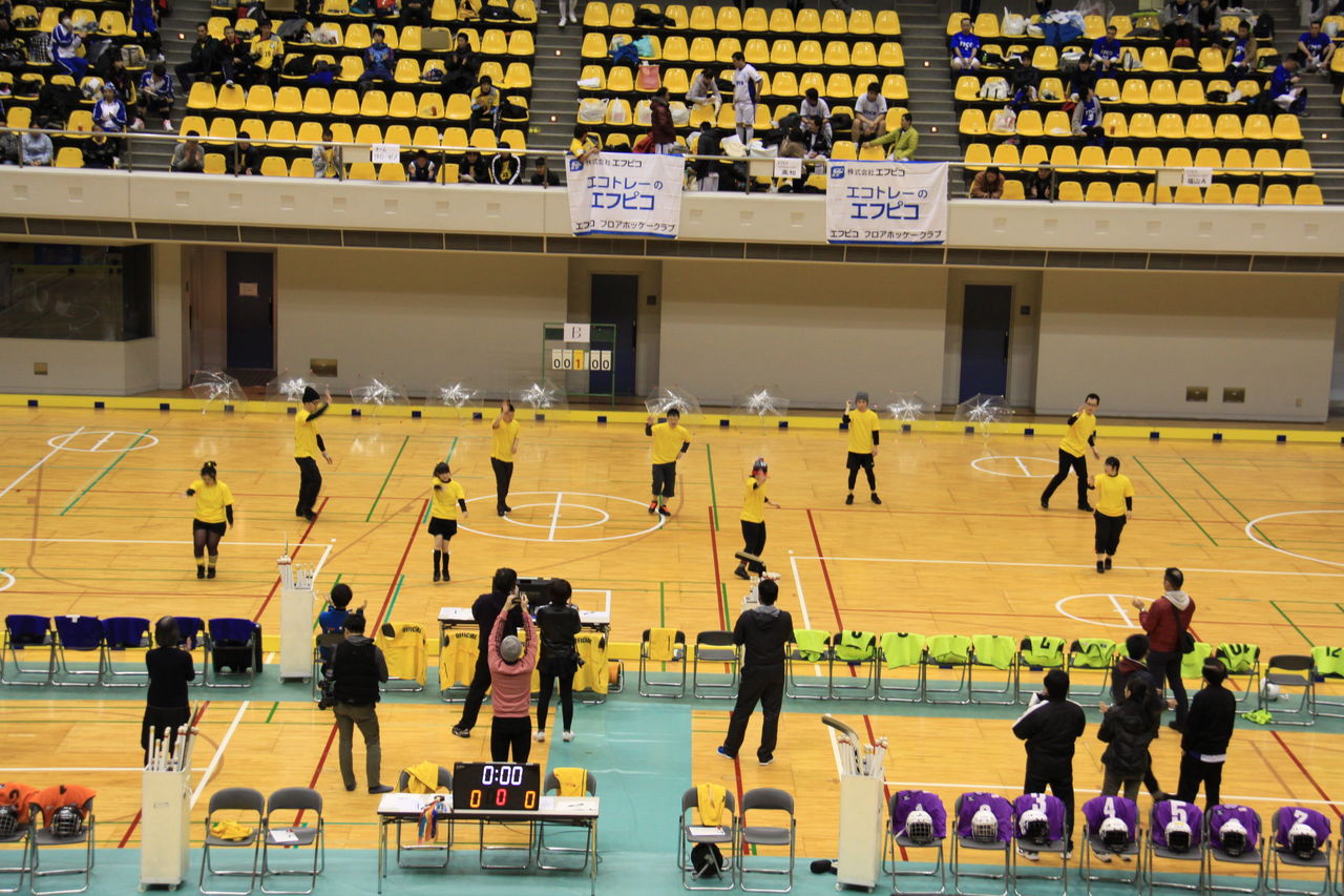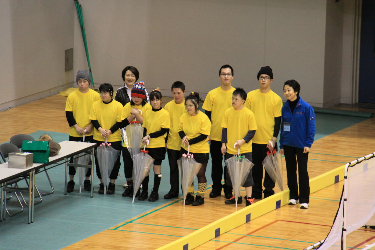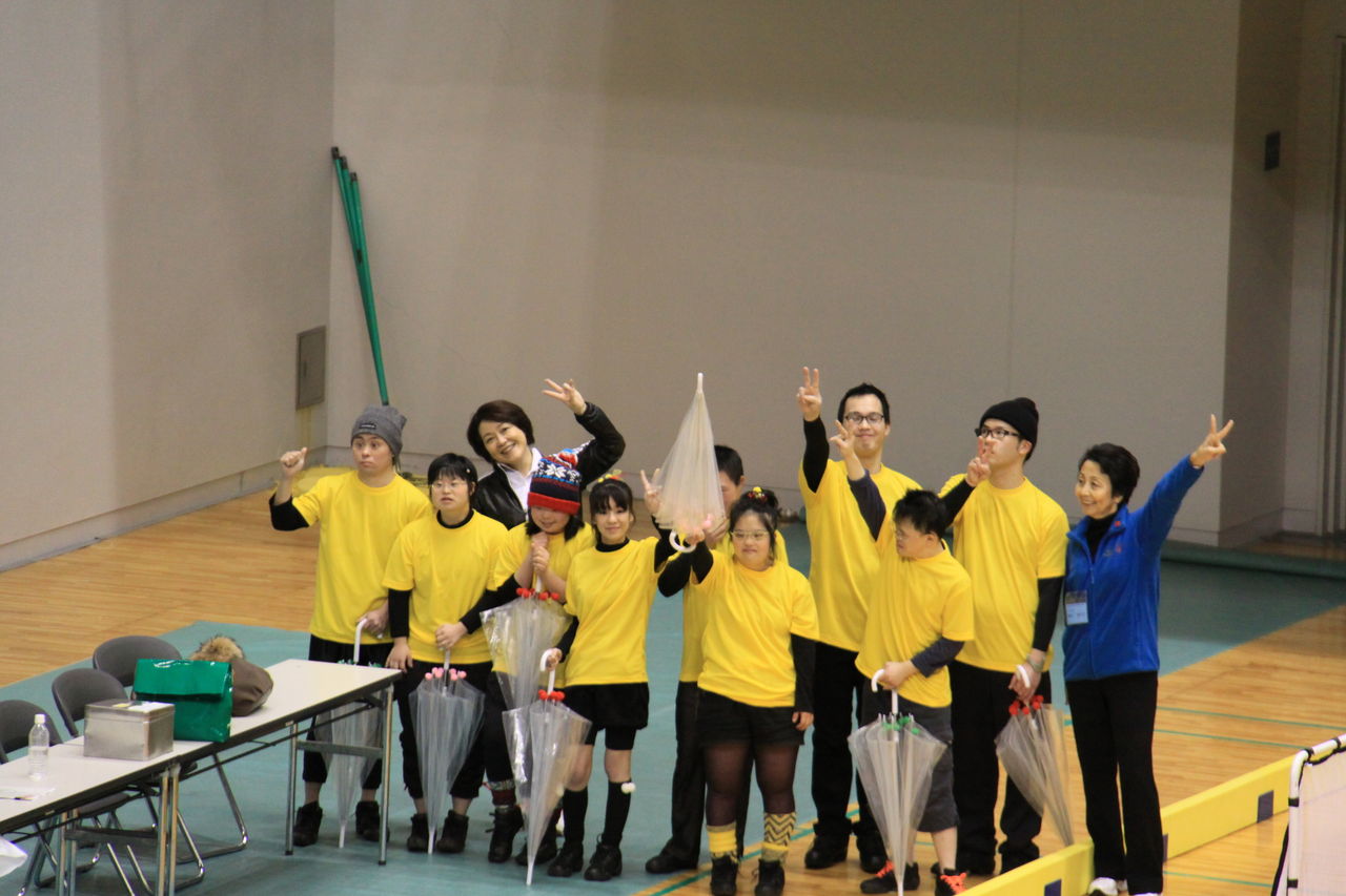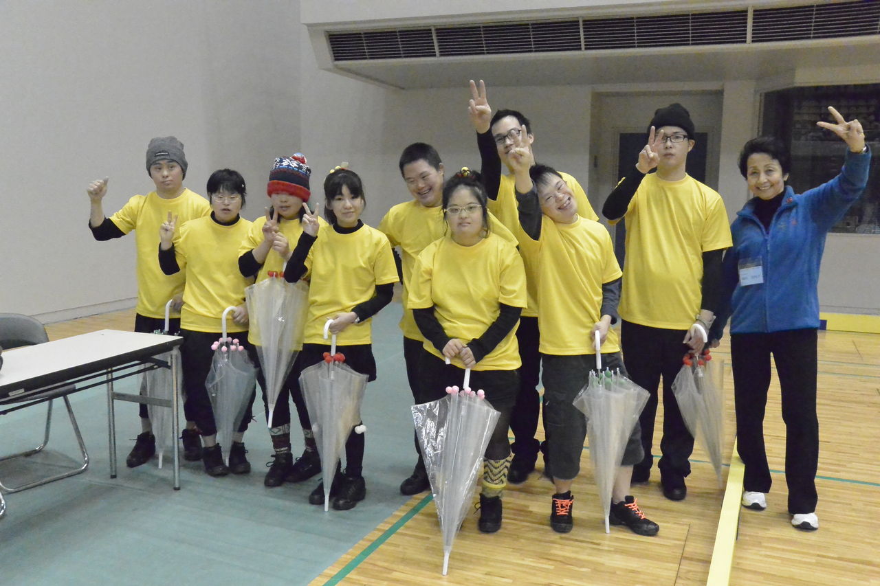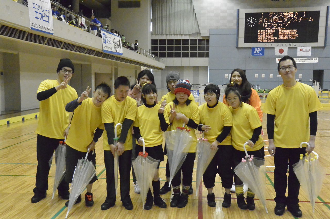 昨年末、ダンスチームが東京で行われた“勇気の翼2014”に参加したことは以前、ブログで紹介しましたが、今回は福山市で行われた「第4回ユニバーサルフロアホッケー大会(エフピコ杯)」でダンスを披露して欲しいとのお話しがあり、