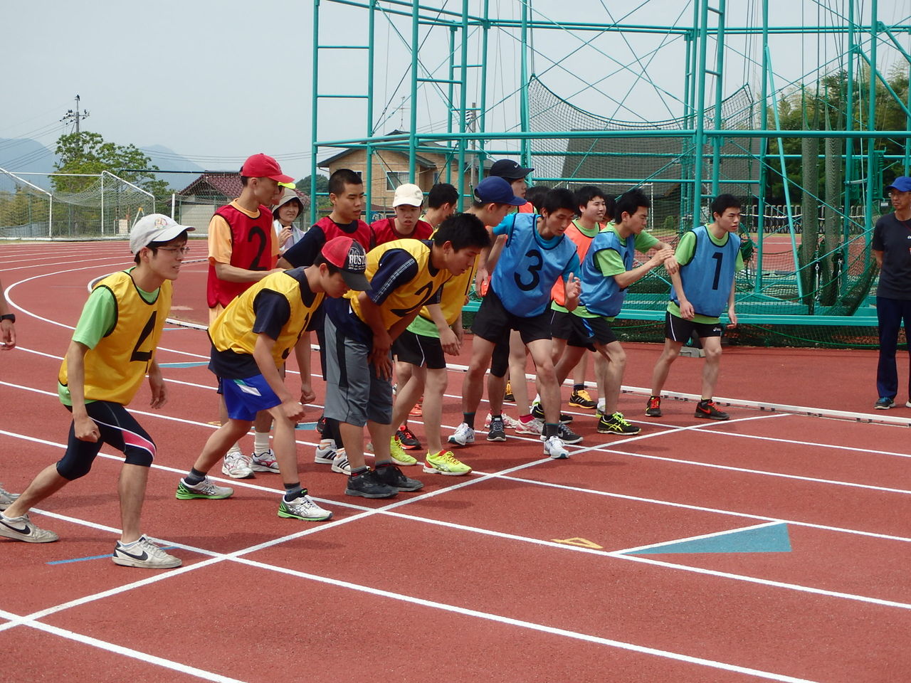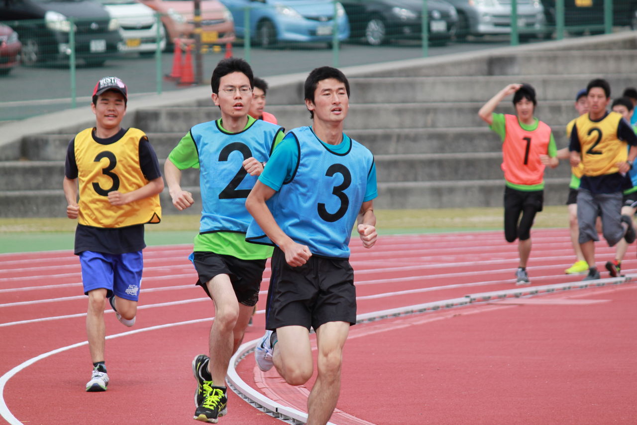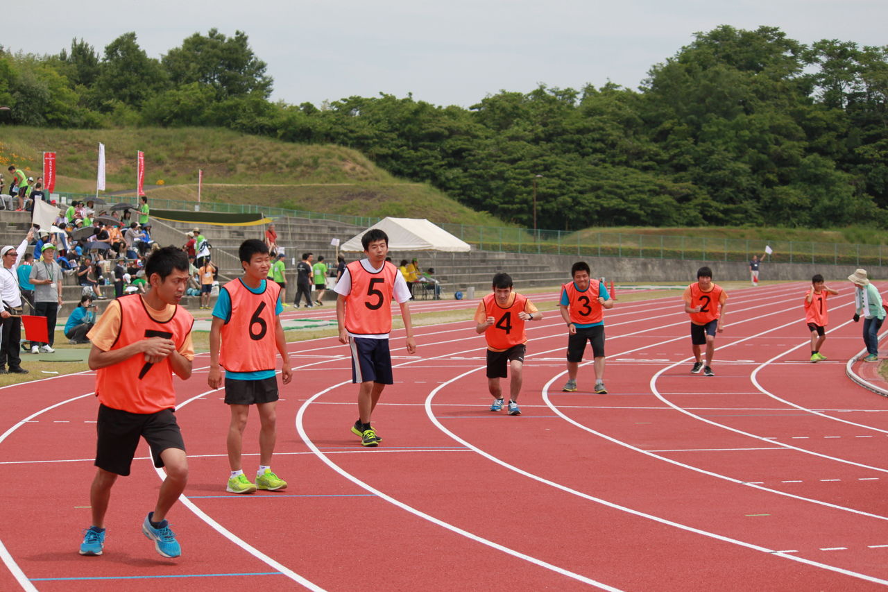 結集しました。レースは、5000m走、1500m走からスタート。エントリーの多かった1500m走は、5ディビジョンに分かれ、色別のビブスをつけたアスリートが、熱戦をくり広げました。