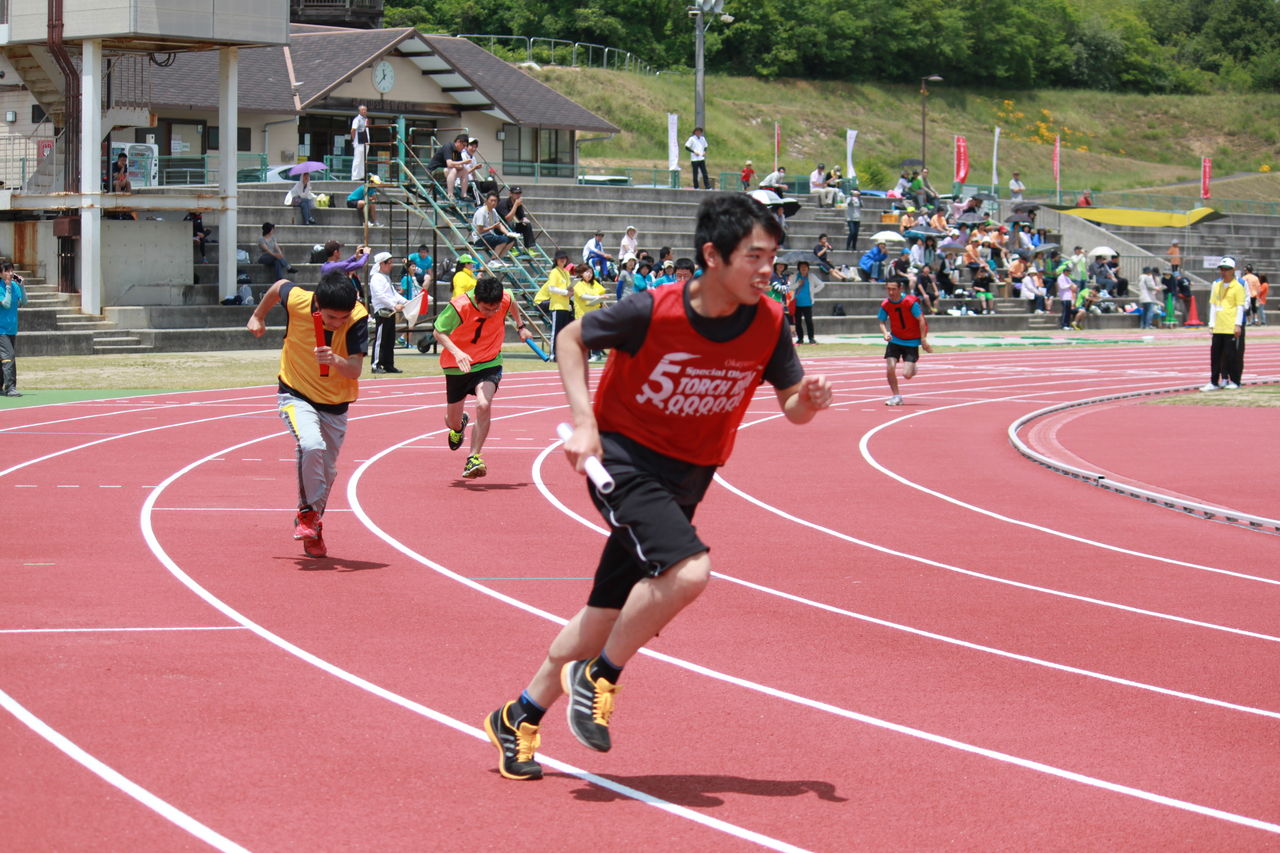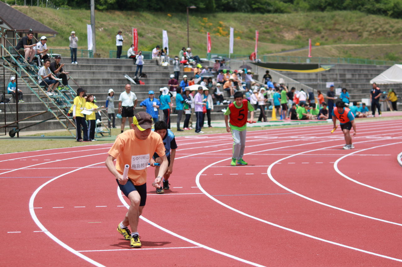 今年も陸上競技の部をかわきりに岡山地区大会が始まりました。5月24日(日)心配していた天候も予報を裏切る好天で、神崎山公園競技場に、SON・高知、香川からの参加を含め70名近いアスリートが