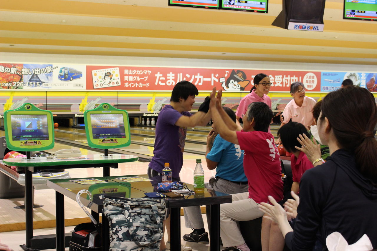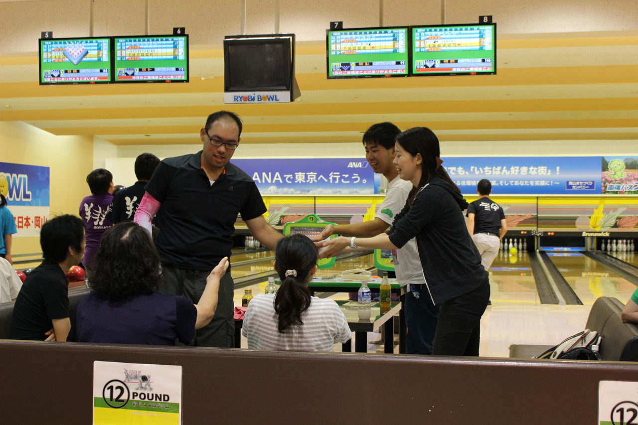 ストライクが出て、パートナーが1投目になるペアも。笑いあり、ハイタッチ有り、応援席からの拍手有り、とっても楽しい試合でした。最後はボックスごとのアベレージで1〜3位、ブービー賞の表彰もあり、