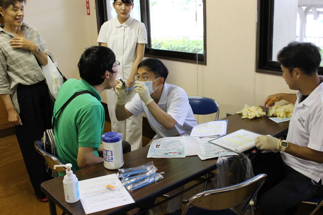 昨年同様、歯科医師会などのご協力で歯の検診と歯磨き指導を行いました。