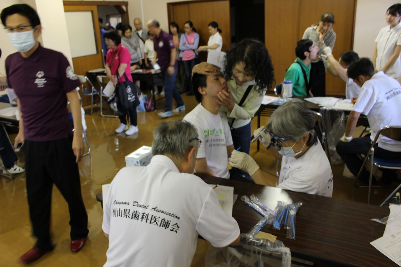 午後からは、会場を岡山市障害者体育センターに移し、ハップ「スペシャルスマイルズ」と並行してユニファイドボッチが行われました。昨年同様、歯科医師会などのご協力で歯の検診と歯磨き指導を行いました。