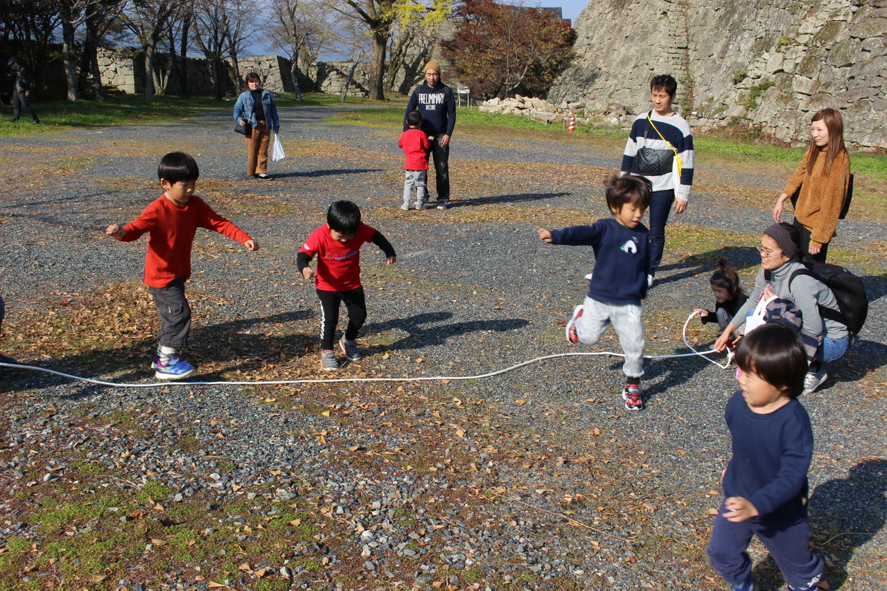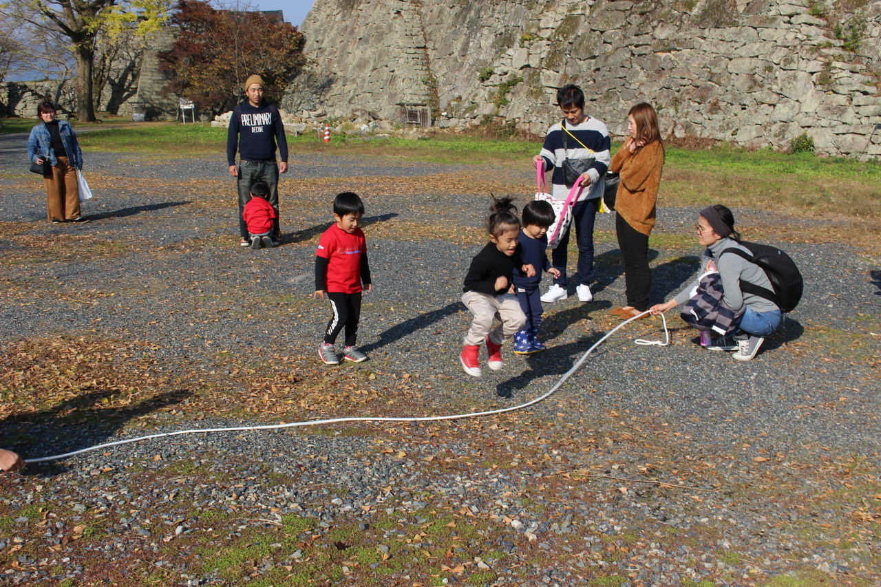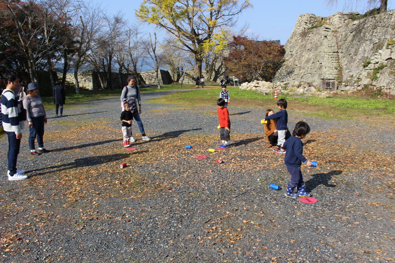 眼下に広がる風景を楽しんだり櫓に登ったり、元気な子ども達はゲーム楽しみました。アスリート部会では定番のハンカチ落としにも挑戦。分かりやすいようハンカチをビーンズパックに替えてやってみました。