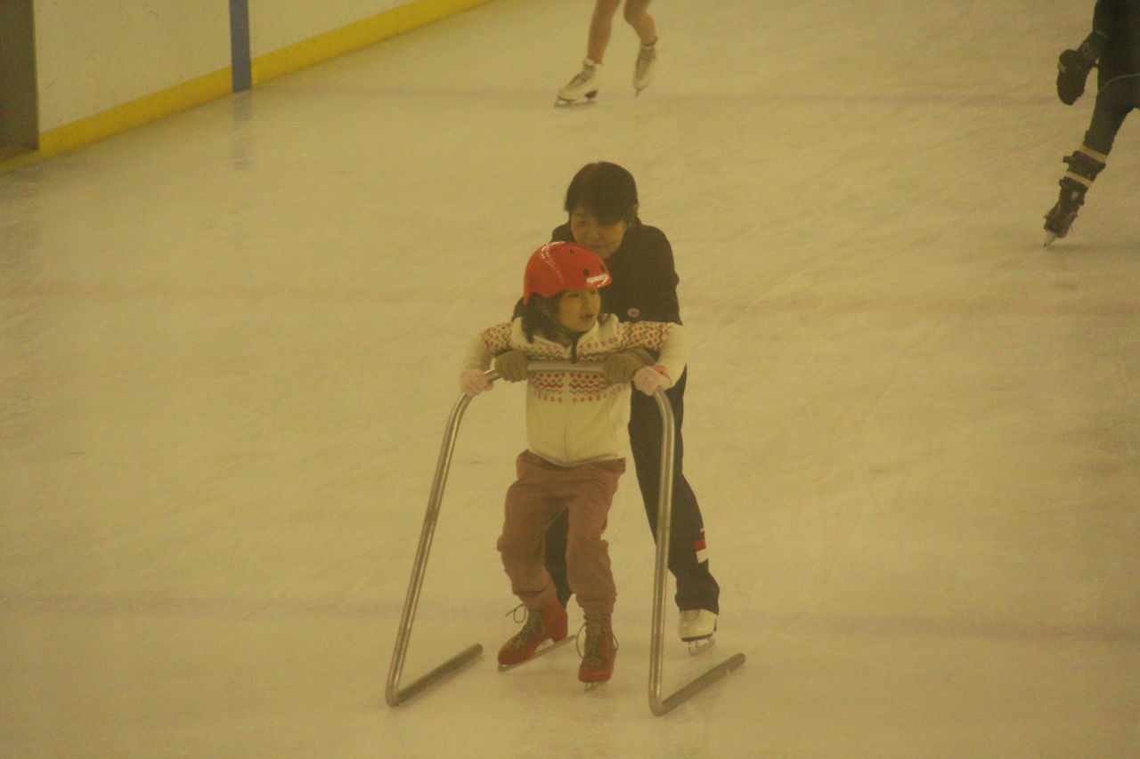 手をつないだり、休憩をはさんで2時間あまりも練習しました。初めてなのにリンクの真ん中でちょこちょこ1人で歩けるようになっていましたよ。このスケート場はオリンピック選手の高橋大輔さんがかつて練習していたところで、今もちびっこから学生までたくさんのスケーターが練習しています。周囲でジャンプしたりスピンしたりするのを見てまゆちゃんもぴょんぴょん(気持ちわかる〜)。お父さんは転んで痛いと言って5分で辞めるかも??と思っていらしたとか、嬉しい驚きのようでした。もう少し体験会を重ねて、参加者が決まったら正式なプログラムにしようと考えています。