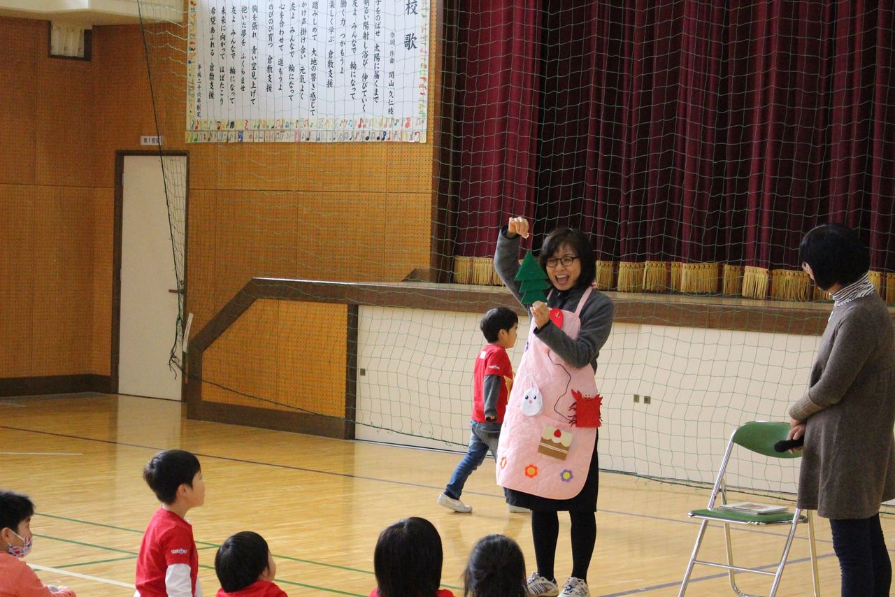 「どこから来たの?」「いい子にはプレゼントがある?」などなどいっぱい聞いてましたよ。修了証、卒業生への記念品贈呈の後、