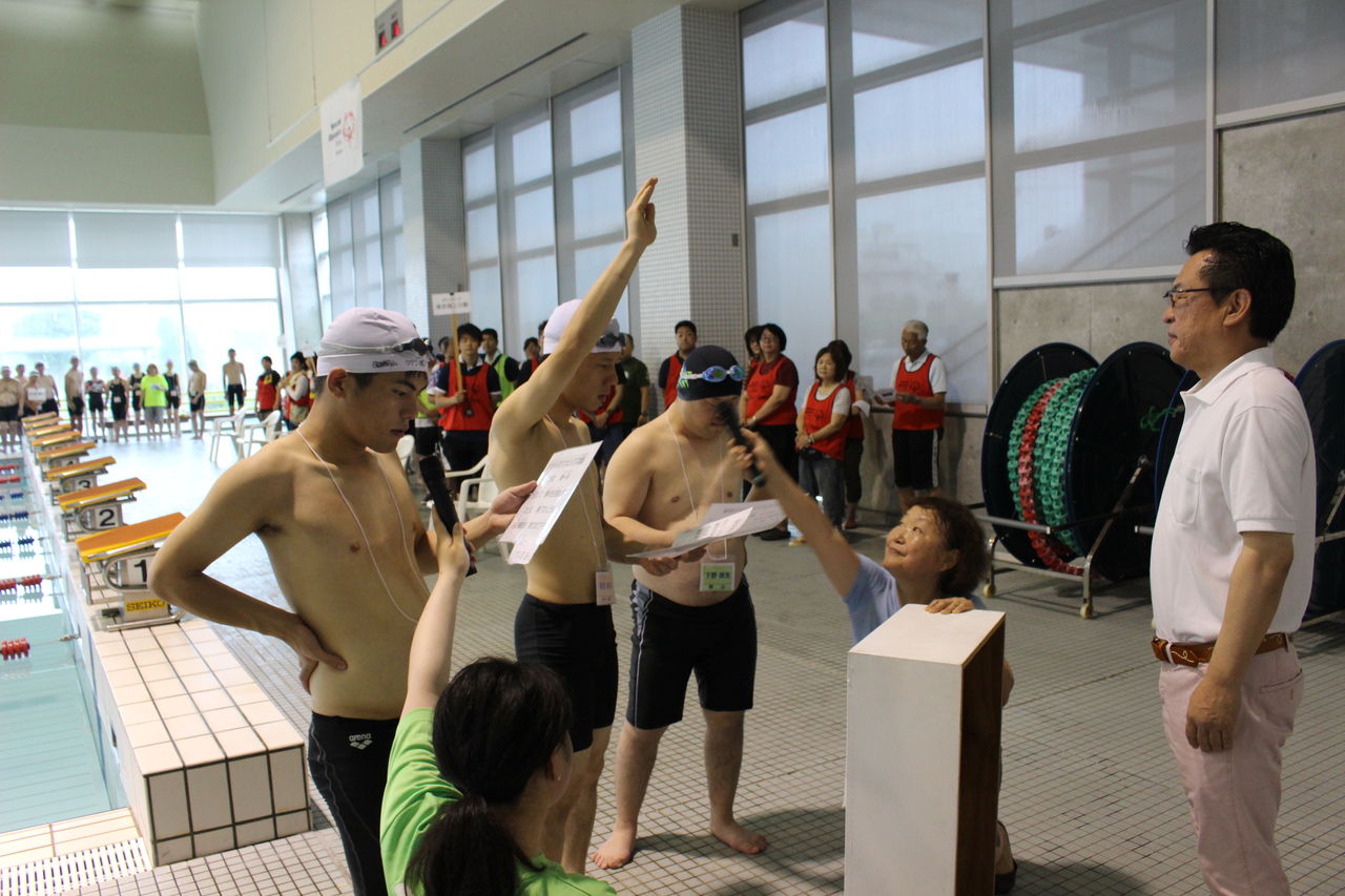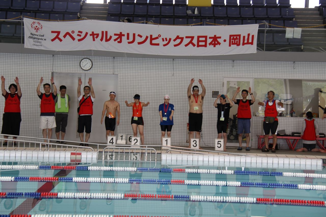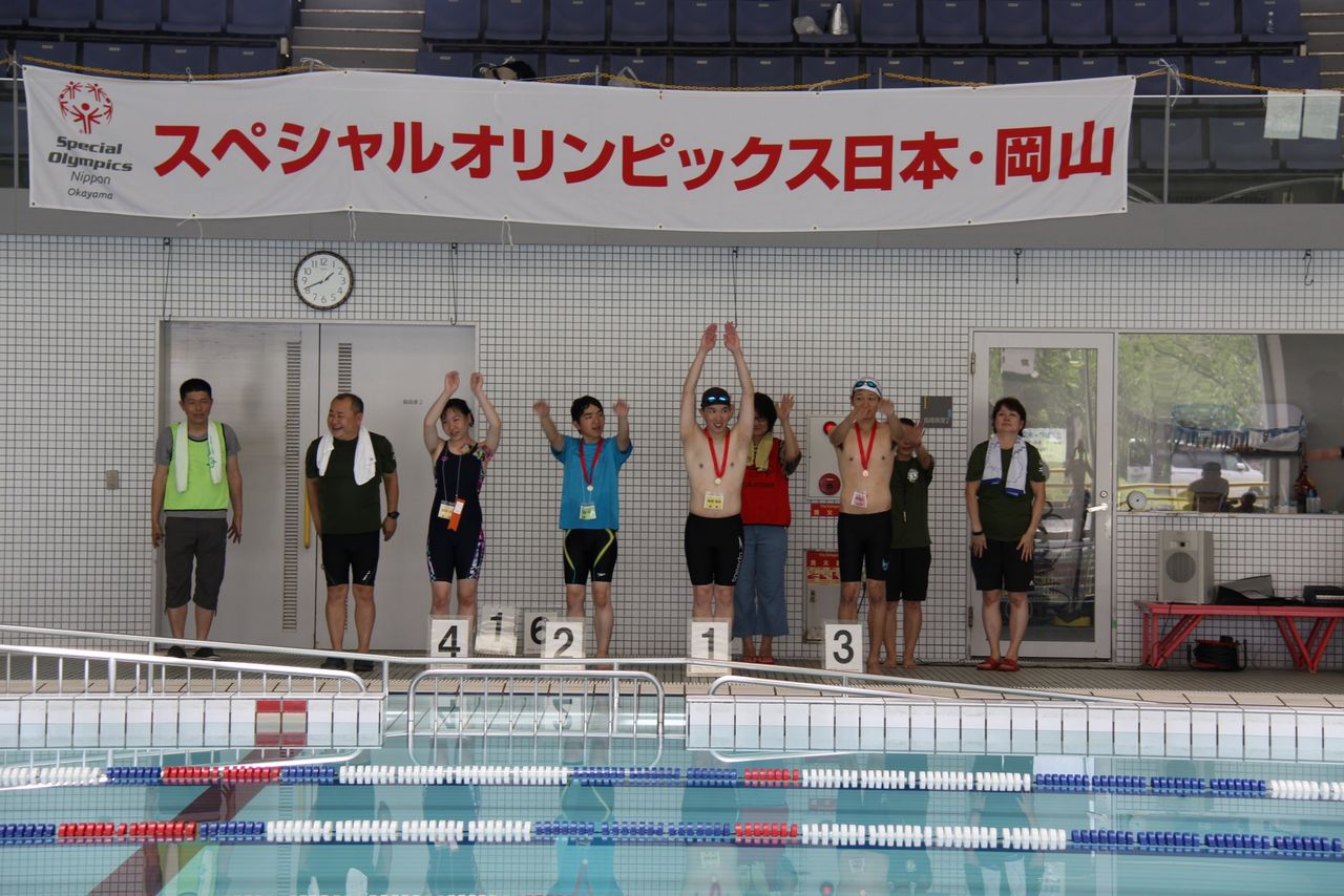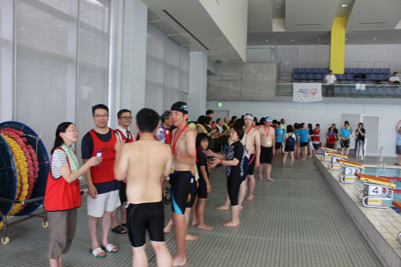 堂々としていました。最後のリレーは、ビート板・女子チーム・コーチやボランティアとのユニファイドチーム・混合チームと