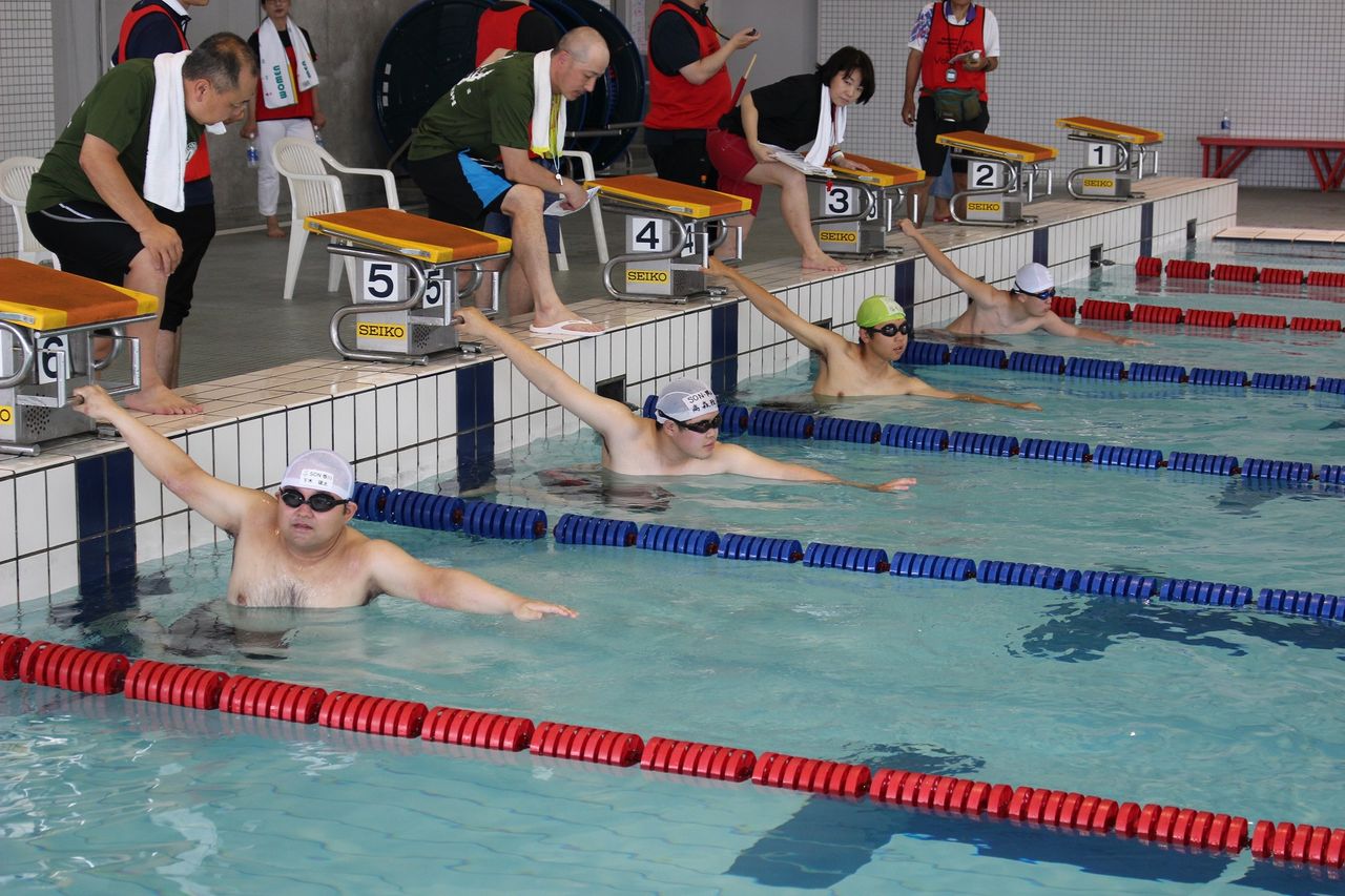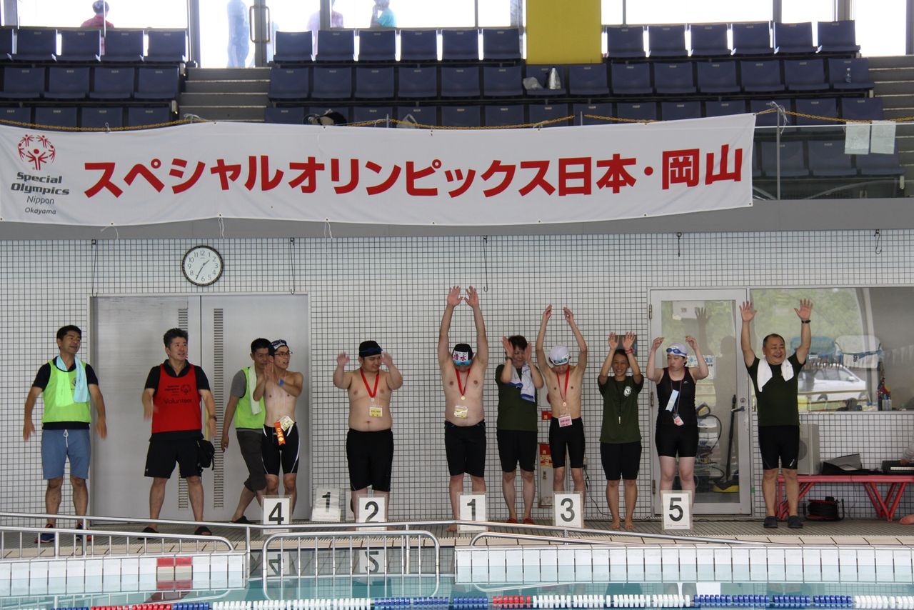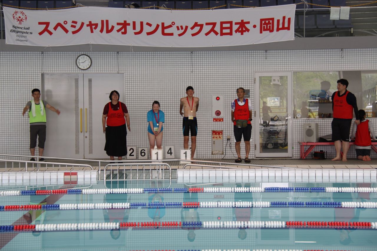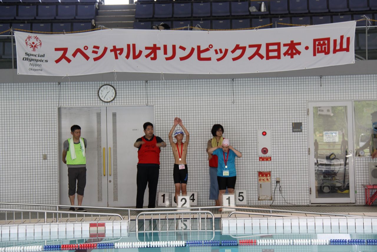 堂々としていました。最後のリレーは、ビート板・女子チーム・コーチやボランティアとのユニファイドチーム・混合チームと