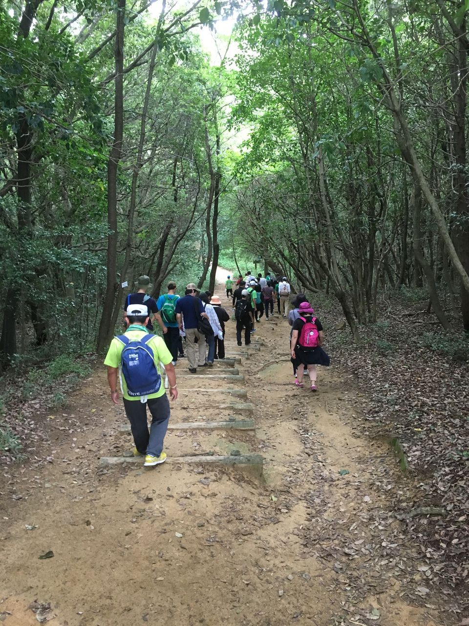 まだ梅雨時期とあってどんよりとしたお天気で、スタートするときは小さな雨粒がぽつぽつと落ちて来ましたが、みんな雨具やタオルなどをリュックに入れて準備は万全です。中吉コーチから「登山道に入ると木の葉が雨を