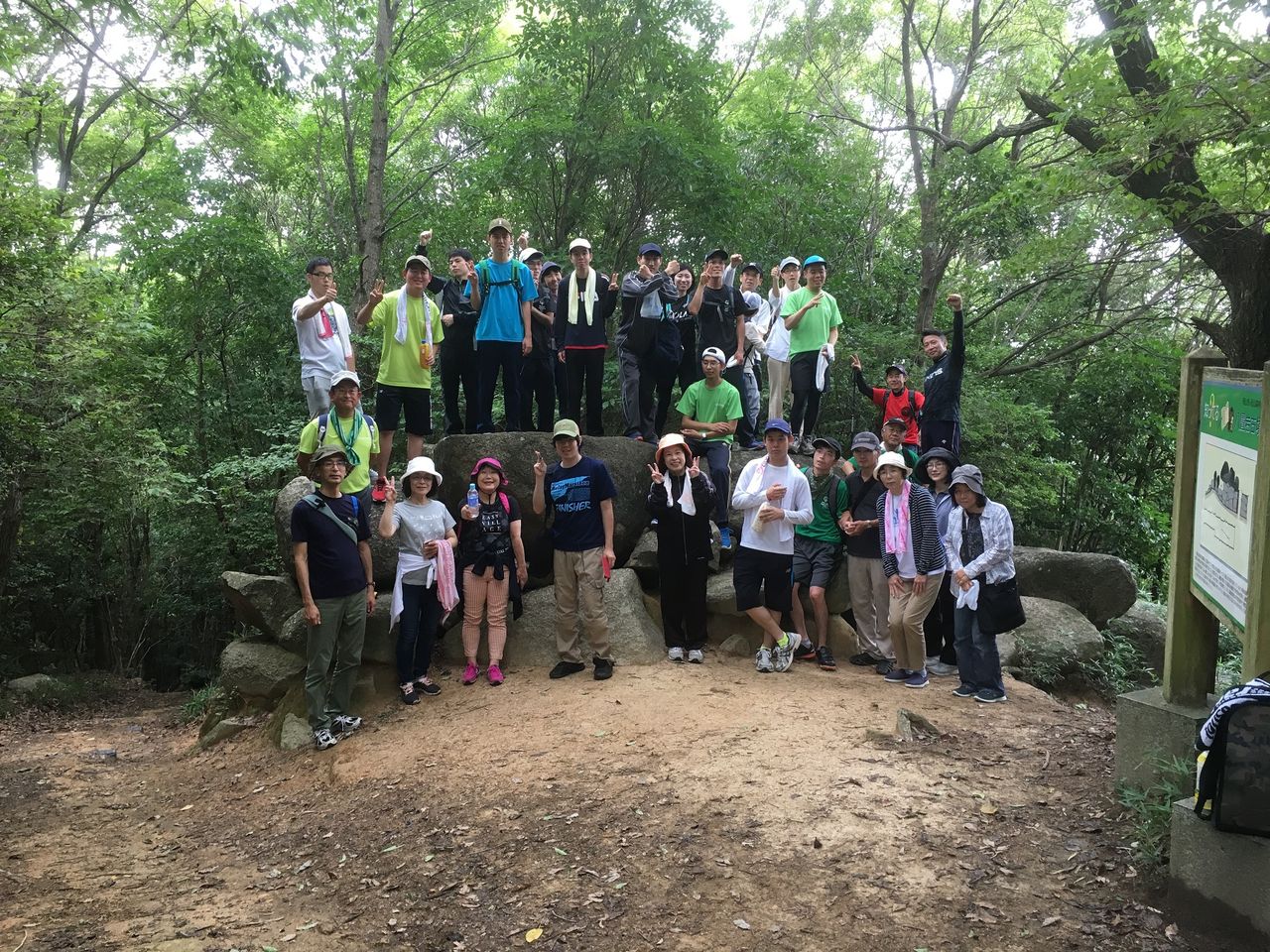 、南に児島湾や金甲山まで見渡せました。目的地の八畳岩古墳は本当に大きな岩で組まれた立派な古墳でした。アスリート達は岩に上っていましたよ。コーチからお菓子やチョコレートをもらい、ほっこりお茶タイムを過ごして、下山しました。