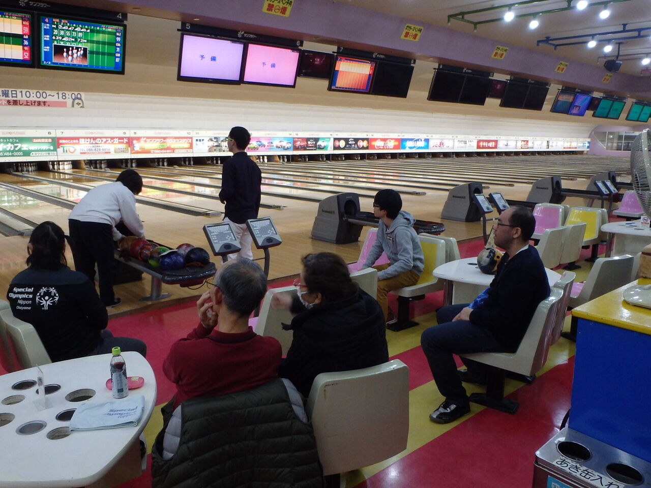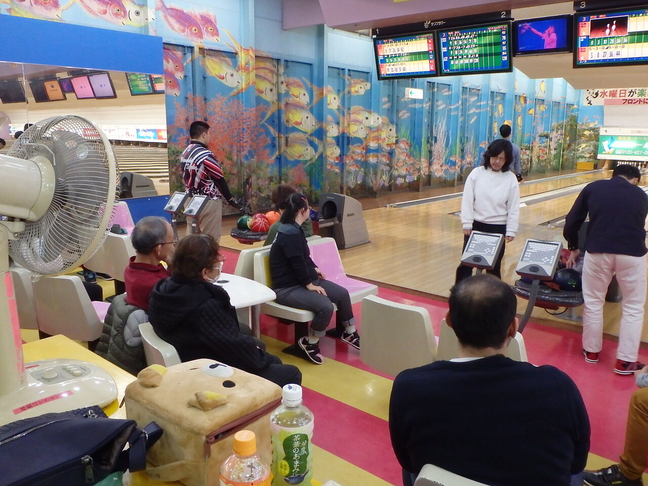 もちろんストライクやスペアでハイタッチもありとなかなかの乱高下。いつもより早いペースで3ゲームが終了しました。引き続き来てくださるみたいで、アスリートの皆さん良かったね!
