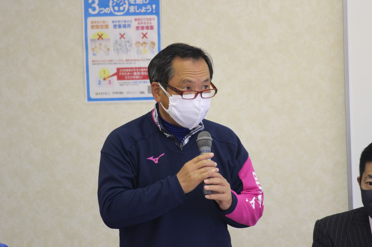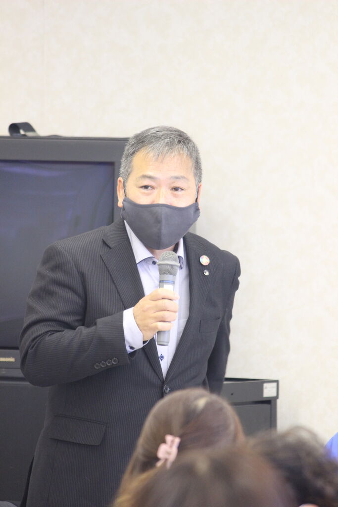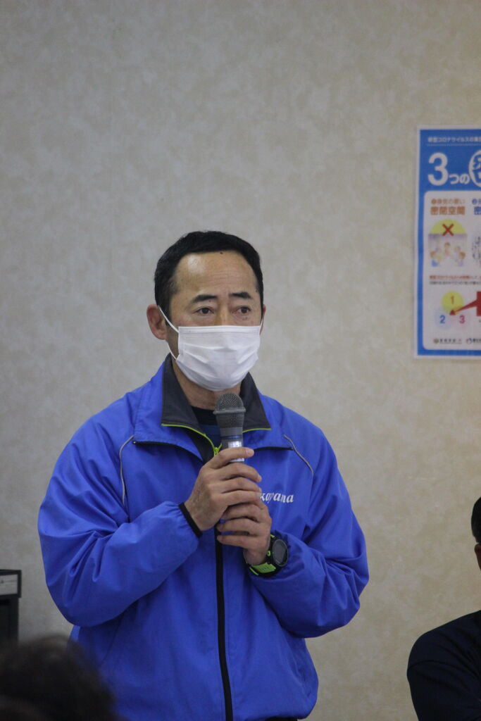 研修室で開催されました。こちらも部屋の定員の半分以下という使用条件があり、アスリートの参加はなく、ファミリーリーダーさんを中心に40数名で行われました。今年の一番大きな事項は、松田会長の後任は吉田大助氏です(松田前会長は名誉会長となります)。自己紹介の後、恒例となった会長への質問タイムでは、