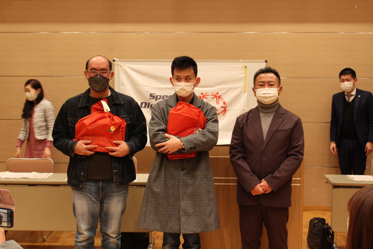 と三宅英之さんは「もしまたこの企画があったら1位をねらいたい!」と感想を話しました。第3位の今城雄登さん(テニス)は都合で欠席のため先日小宮山コーチがお渡ししました。
