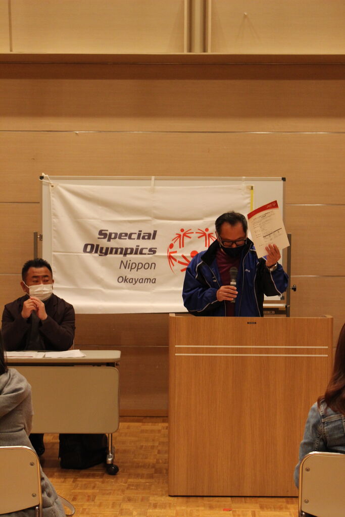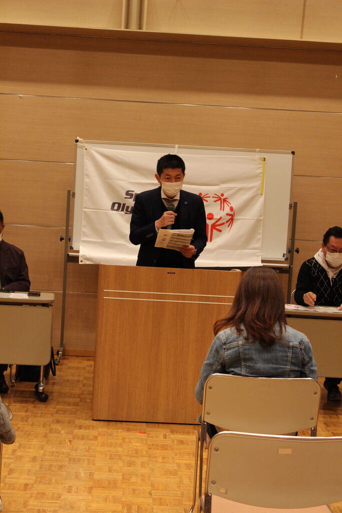 吉田会長はじめ、岡島専務理事、川上財務委員長に出席いただき、先日のSON・岡山総会で承認された事業報告・事業計画、昨年度の決算と今年度予算について説明をいただきました。SP委員会からは今年の地区大会の方針が、恒例の会長への質問コーナーでは、ファミリーやアスリートからの突然の質問にユーモアを交えて丁寧に答えてくださり、