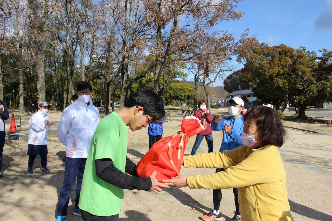 又チームの部で第1位だった陸上岡山チームには1月の練習で商品をお渡ししています。