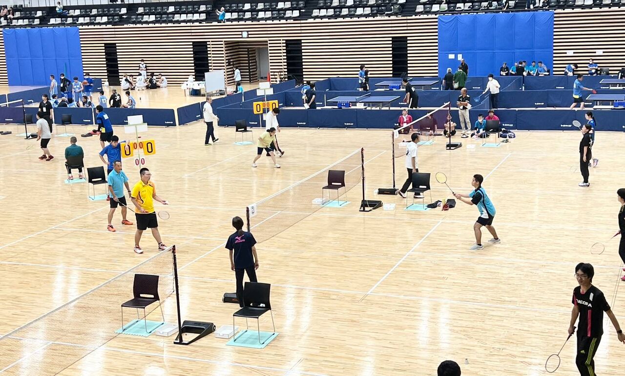 フロア内ではバドミントンの他に卓球、バスケットの競技もありました。