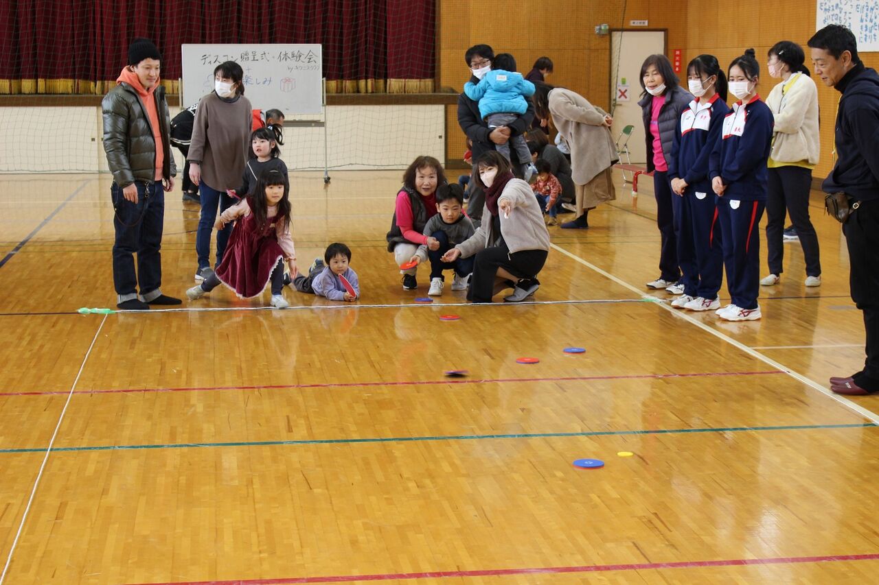 上手にリードしてくださって、小学生達はボランティアの高校生とゲームができ、小さい子どもたちはディスクをいっぱい