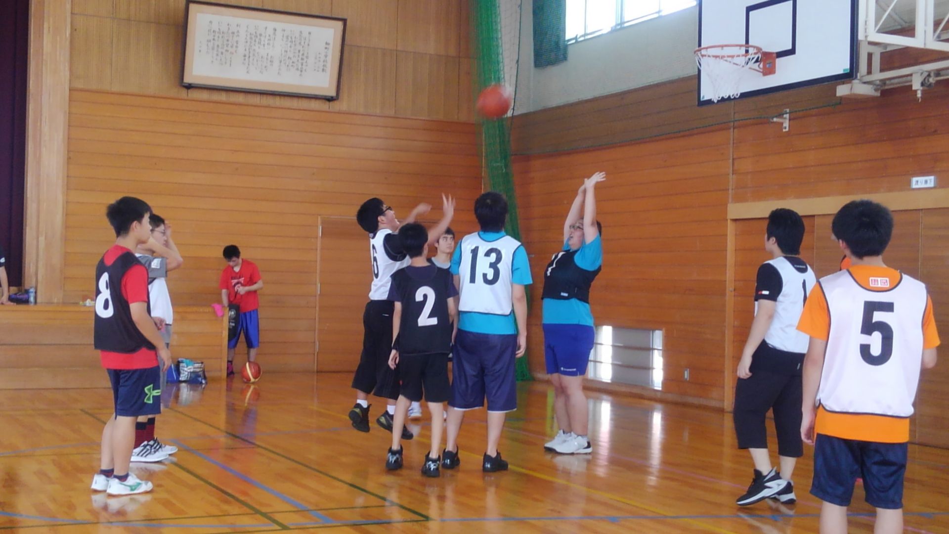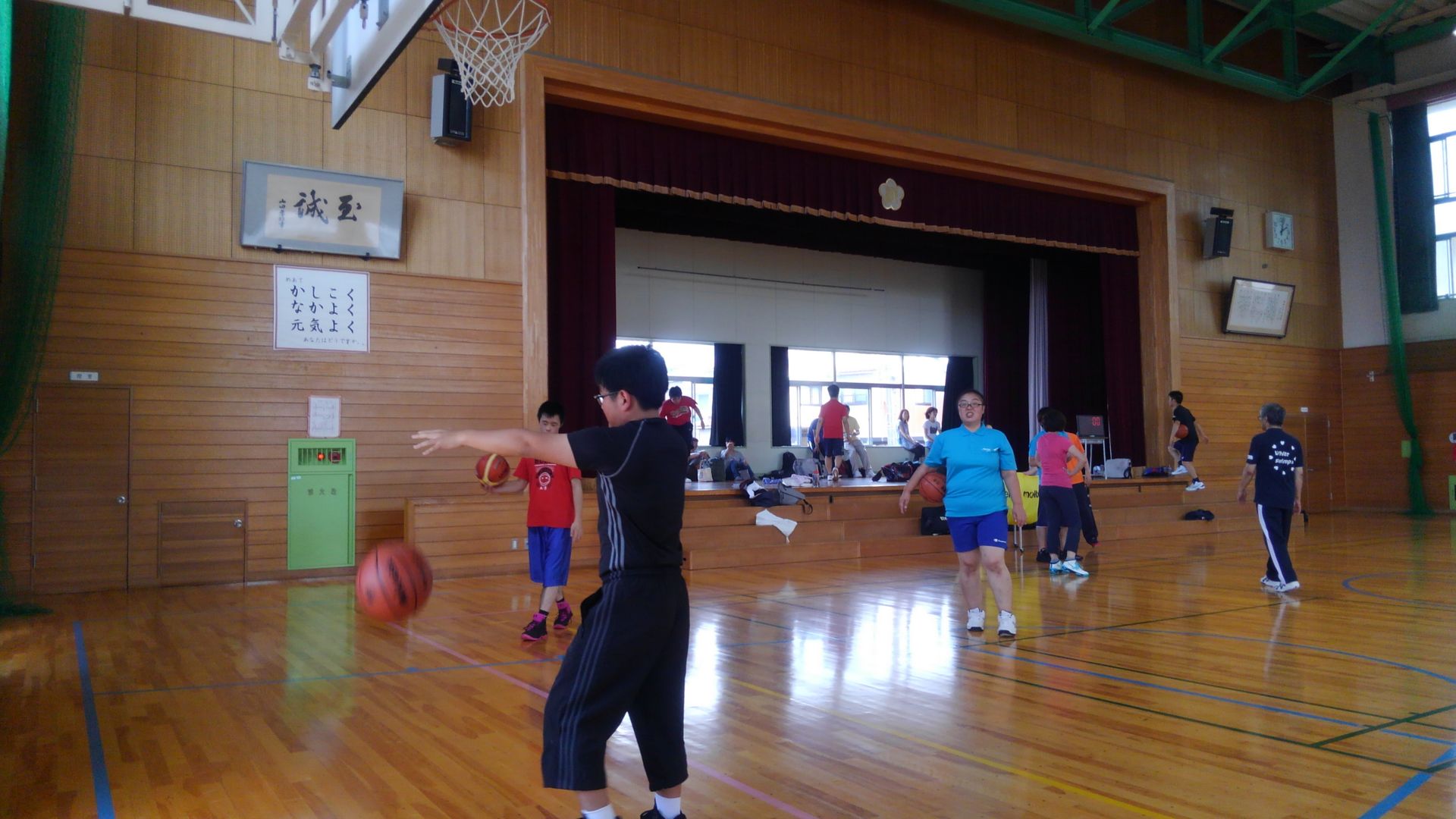 令和元年7月28日(日)梅雨が明けてとても暑い中、第2回バスケプログラムが富山市立柳町小学校の体育館で行われました