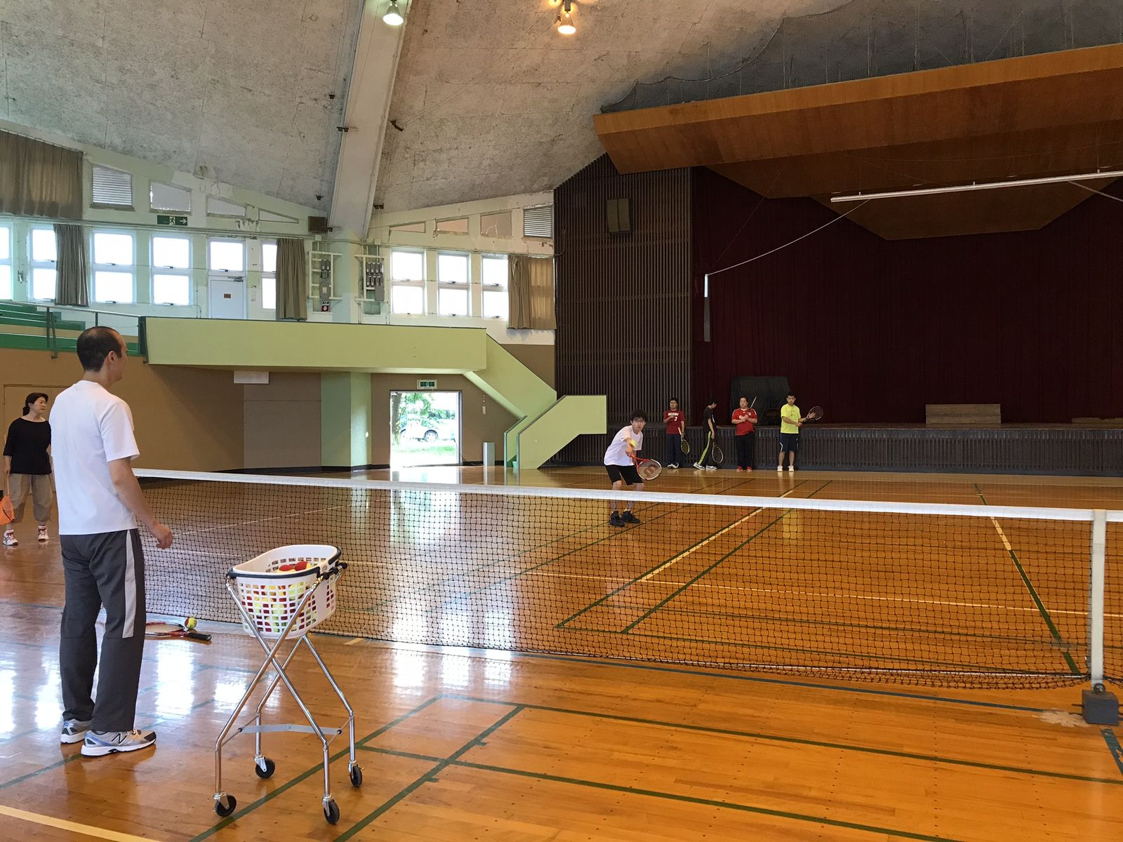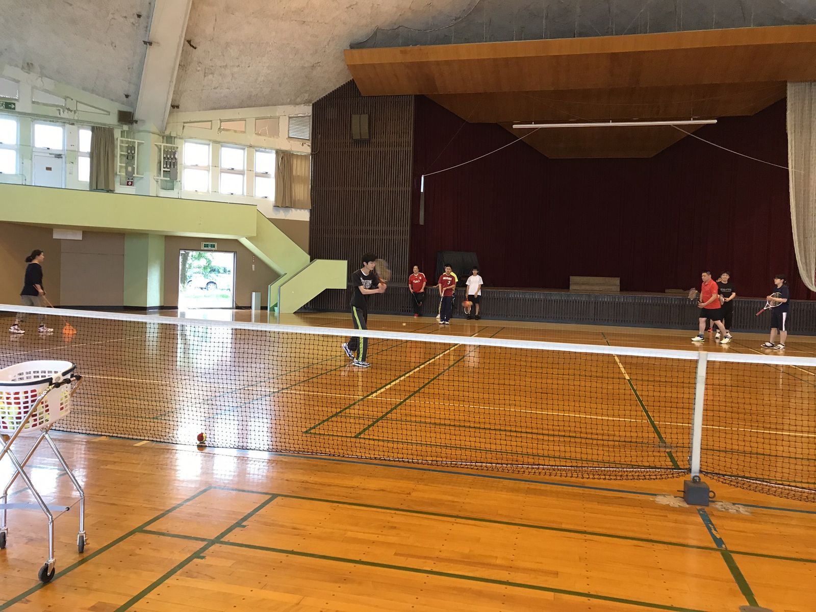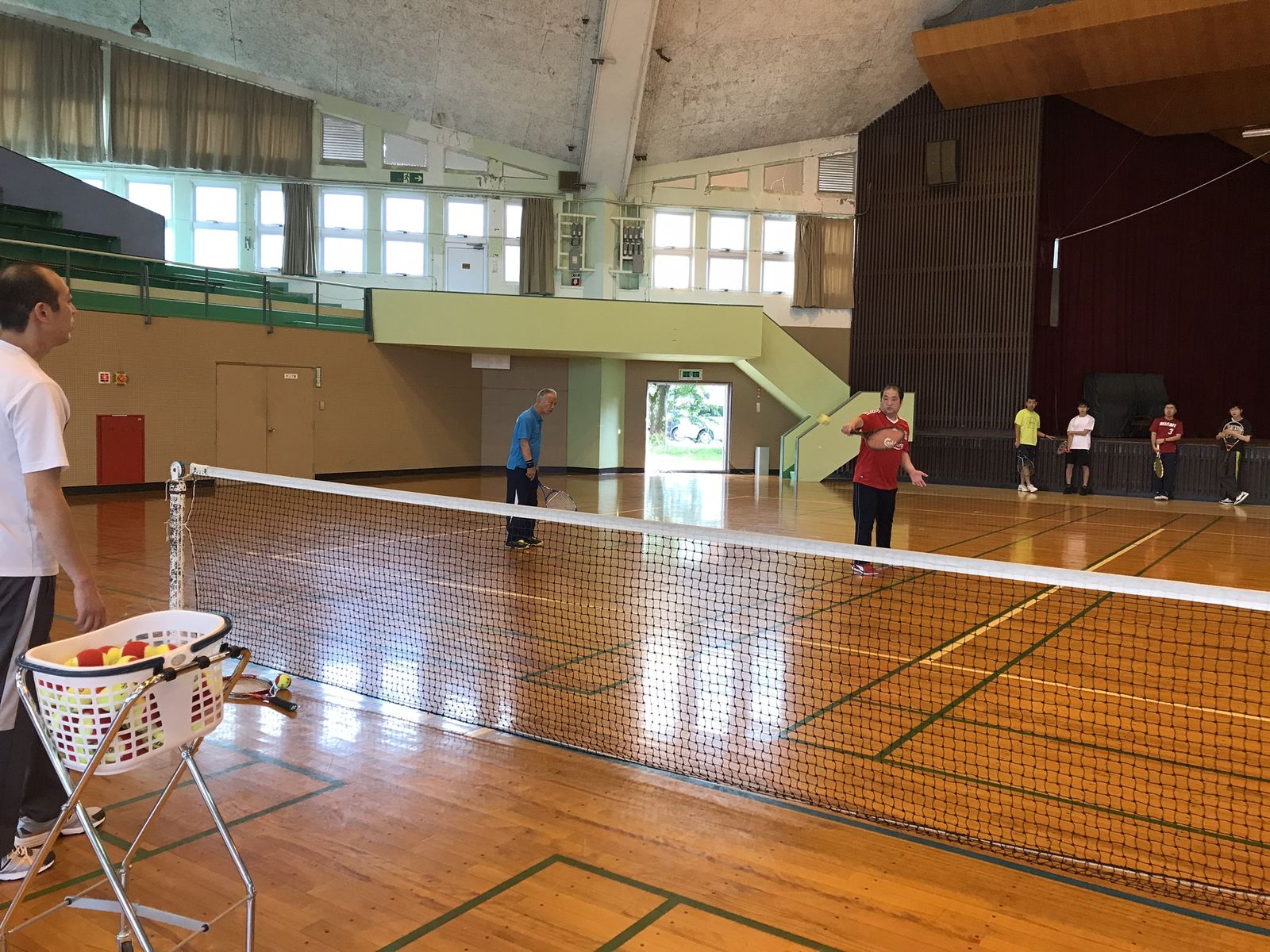 ↓ こんな感じで二手に分かれてストローク練習します。コーチは手でボールを投げます