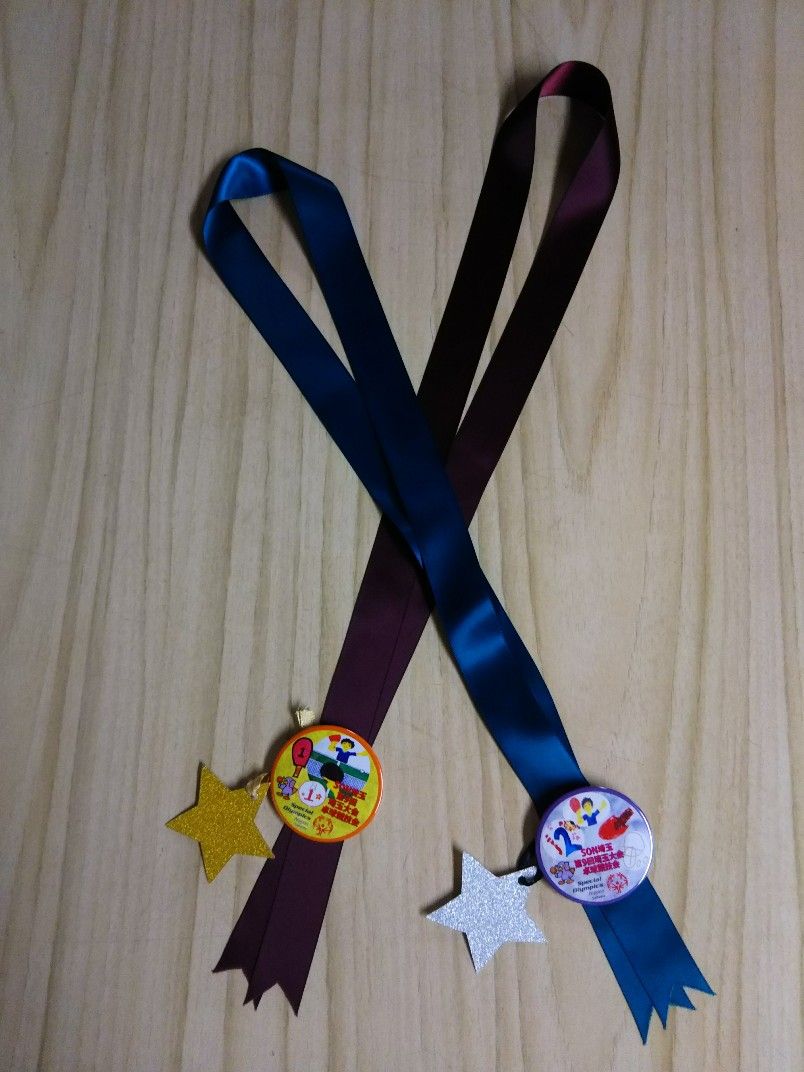 メダルはなんと手作り!リボンをはずすと缶バッジになっています