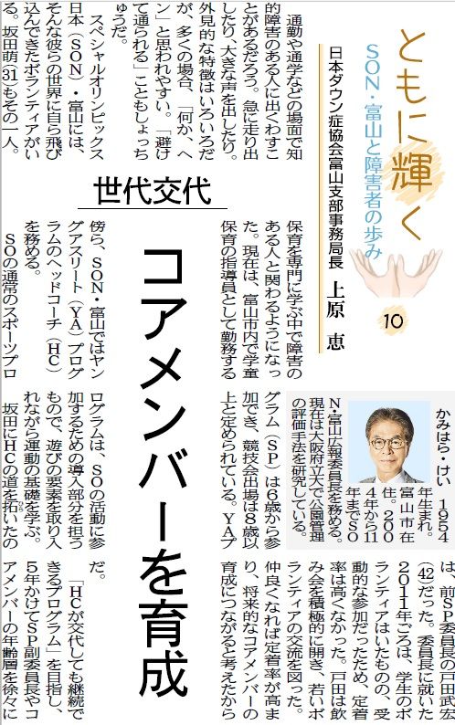 北日本新聞で掲載中の、SON・富山活動エッセイ「ともに輝く」の第11回の記事です。(エッセイが連載される経緯はこちら。)