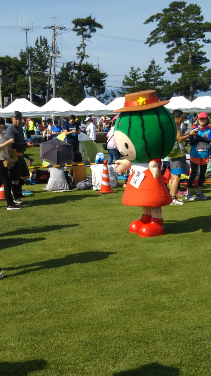 会場のお台場公園に到着すると、スイカマスコットの夏味ちゃんとみんな写真を撮ってた。