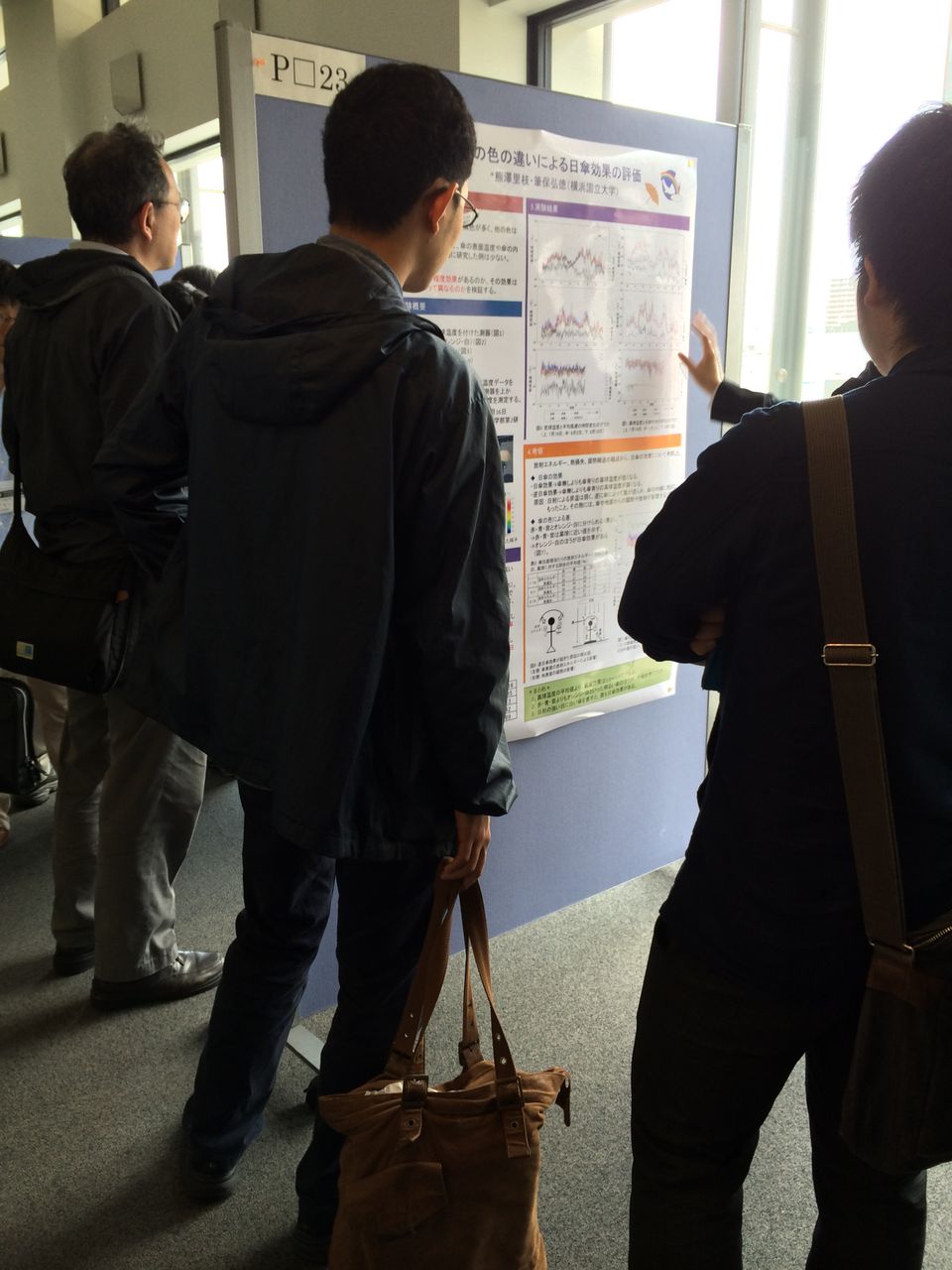 私がマイクを持って走り回ったり計時ソフトを扱ってたりしたのはこの中のホール(情文ホール)で、今日は観測機器や手法について9つの発表がありました。私には難しくてあまり理解できなかった内容が大半でしたが、中には非常に身近な例をあげているところもあり、自分がさらに知識や経験を得たらもっとおもしろいのだろうな、と思いました。