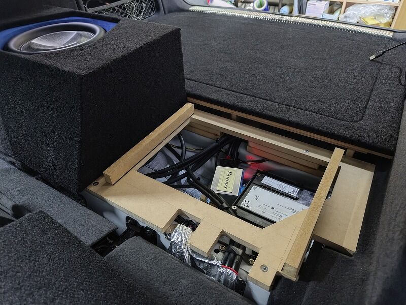 トランクにはアンプ3台、プロセッサー、プレイヤー、サブウーファー、