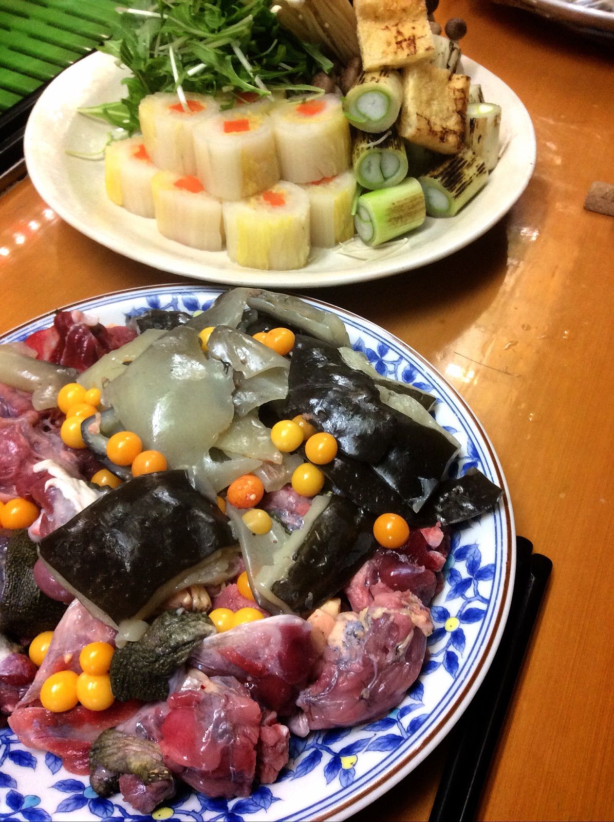 赤身と本皮のお造り、