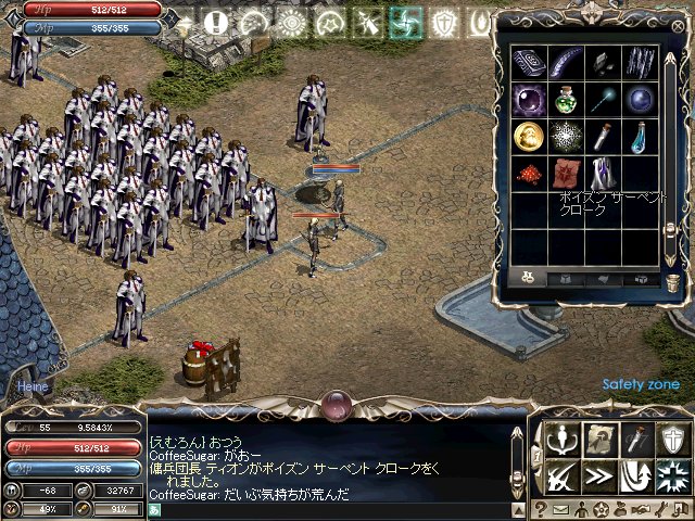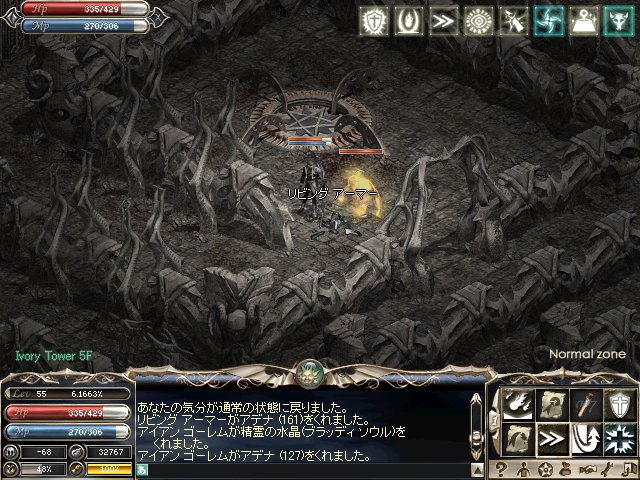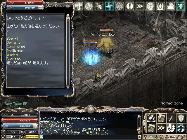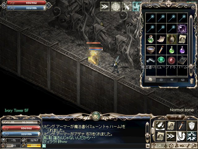 初心者用無料エンチャと、アラもかなり少ないうちに倉庫の在庫だった赤P・OPを大量に持ち、更には倉庫に眠っていた装備できそうなフルZEL防具と+7n-SLSを握りしめTIC2Fに篭ったり、DVC4Fに行ったりして、サクサクLVを上げるまさに無茶狩りをしてましたw