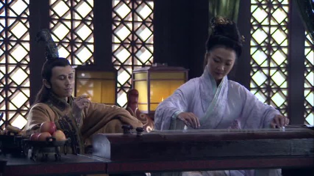 献帝の隣では、彼の愛姫・何(か)皇后が琴を弾じています。