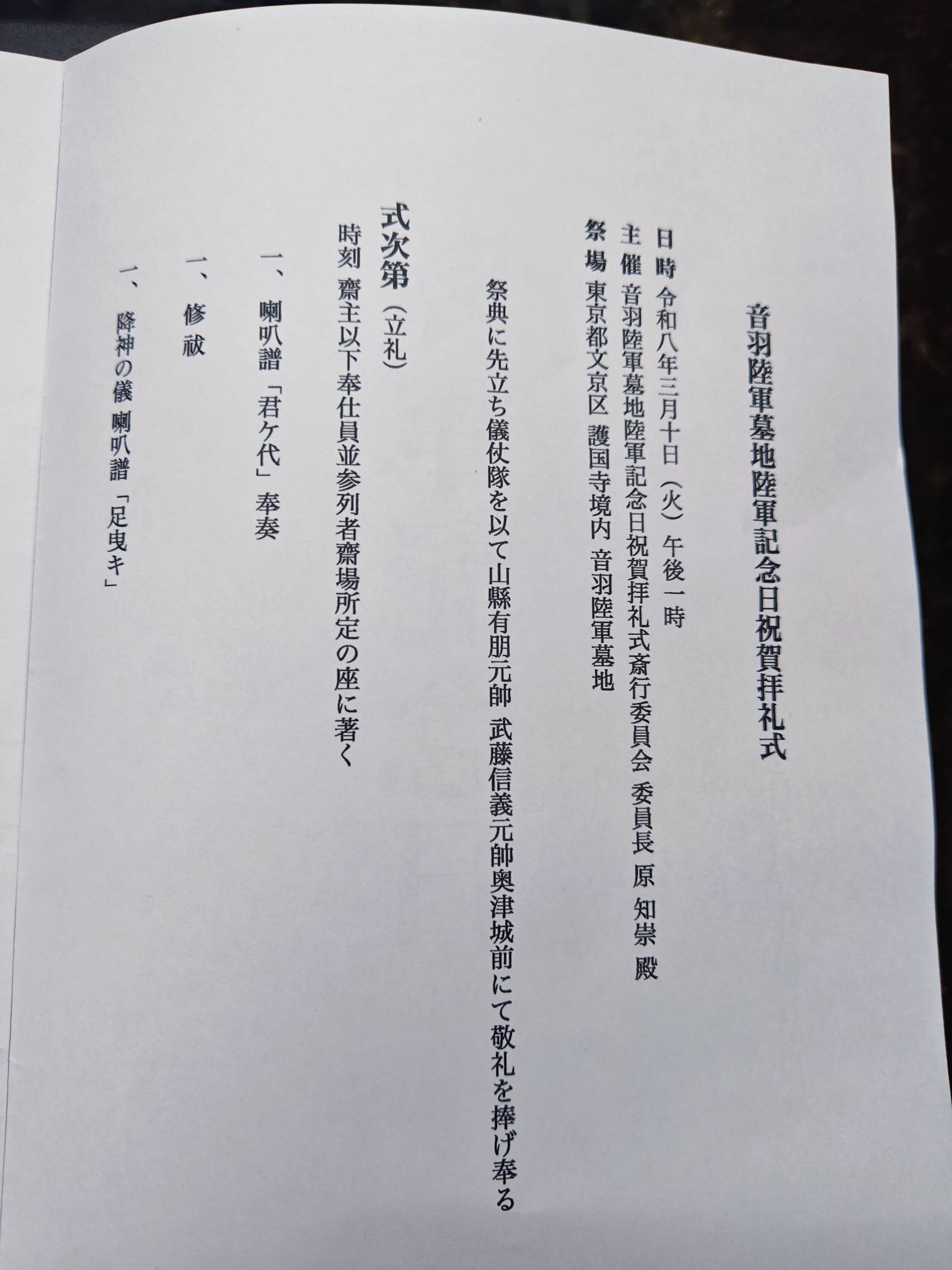 三月十日(火)護国寺の音羽陸軍墓地で行われた