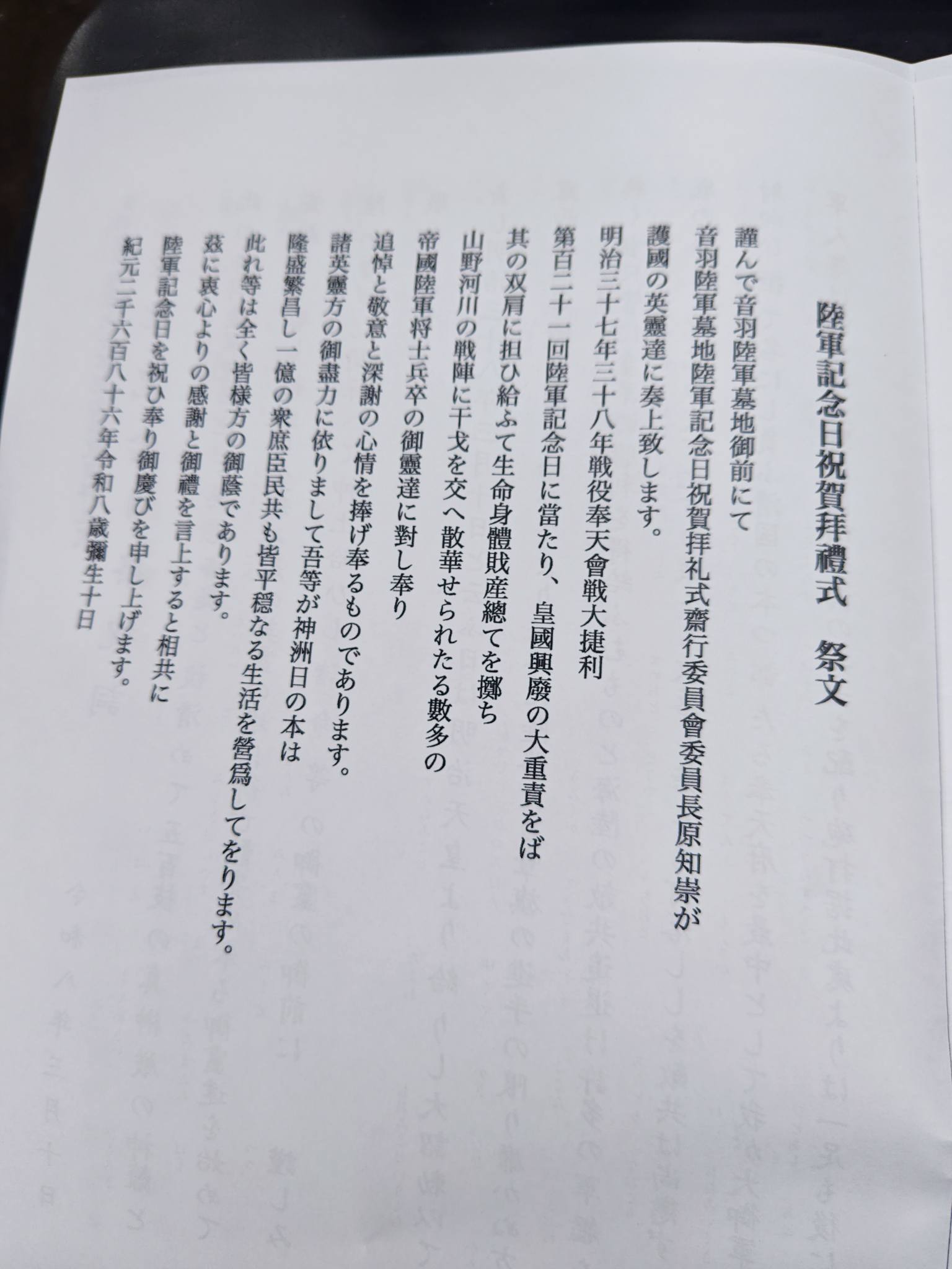村田氏も挨拶で述べられていましたが、「陸軍記念日」と言う大切な日に