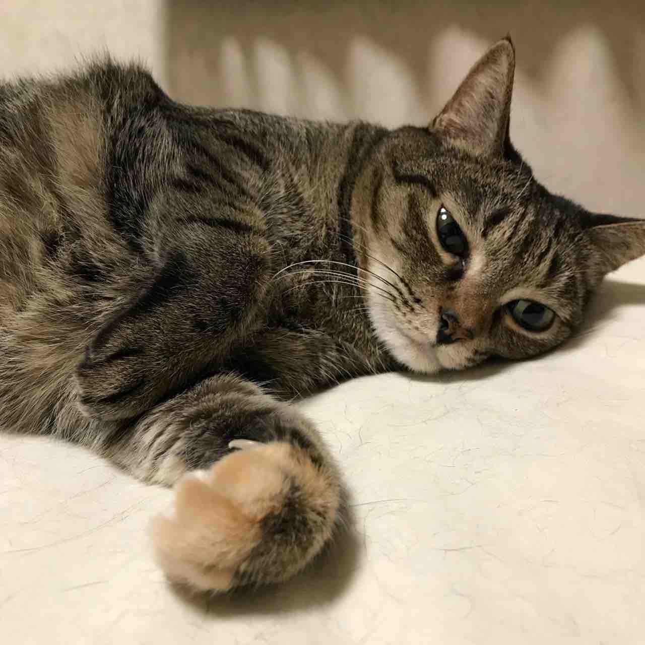 折れた前足、いつ見てもカワイーって思う。そして、この拗ねた顔がたまらない。