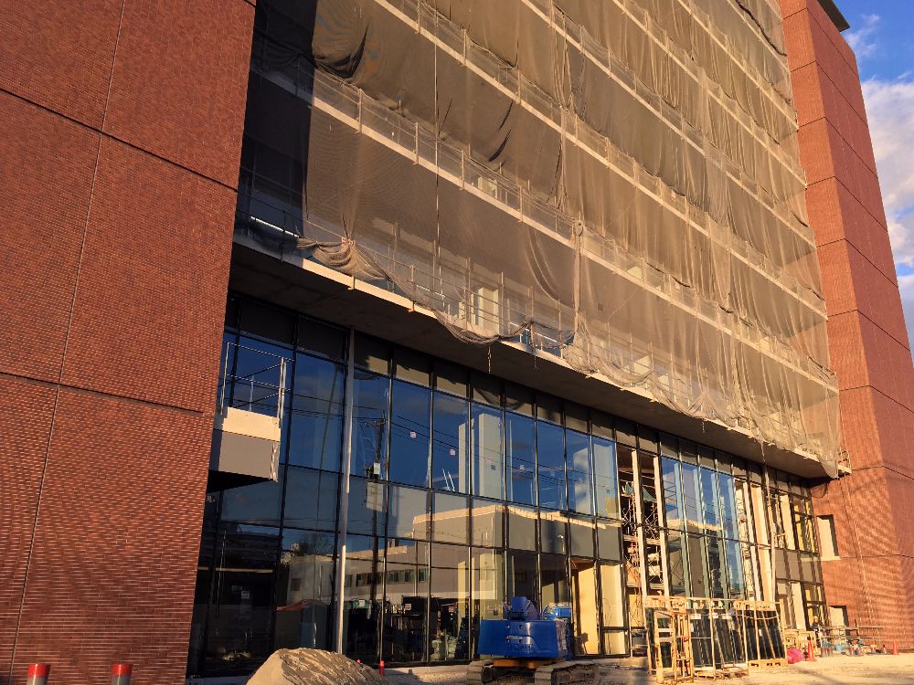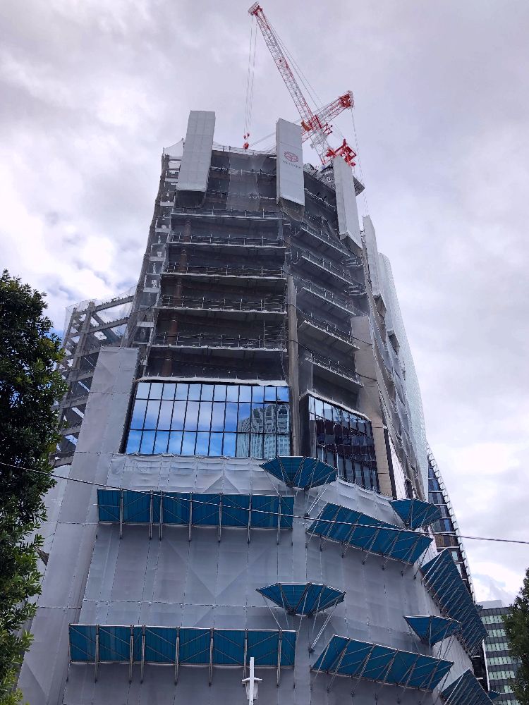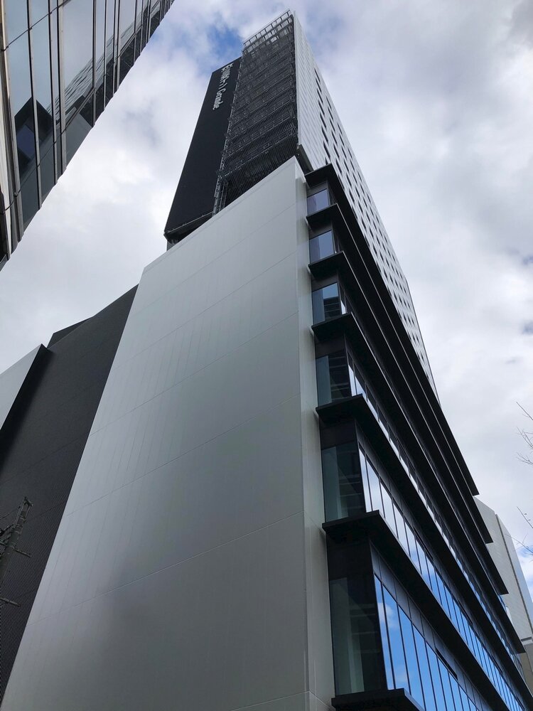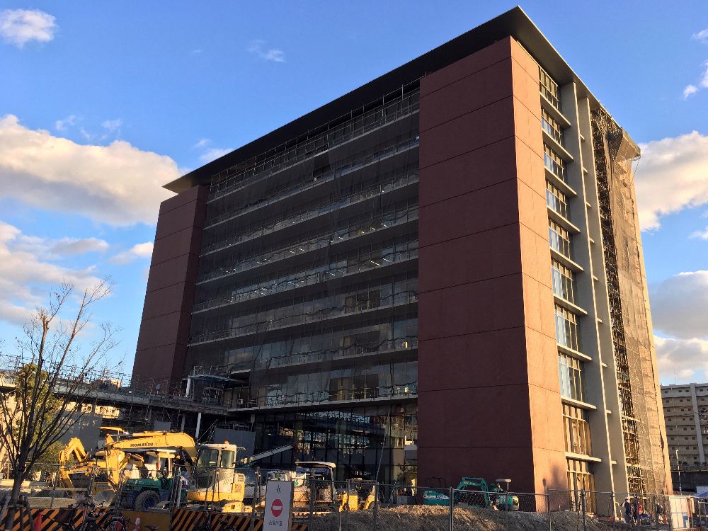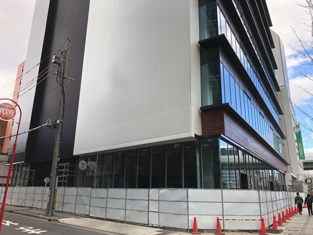 北側(ミッドランドスクエア側)から。こちらもガラスウォールが付き始めました。